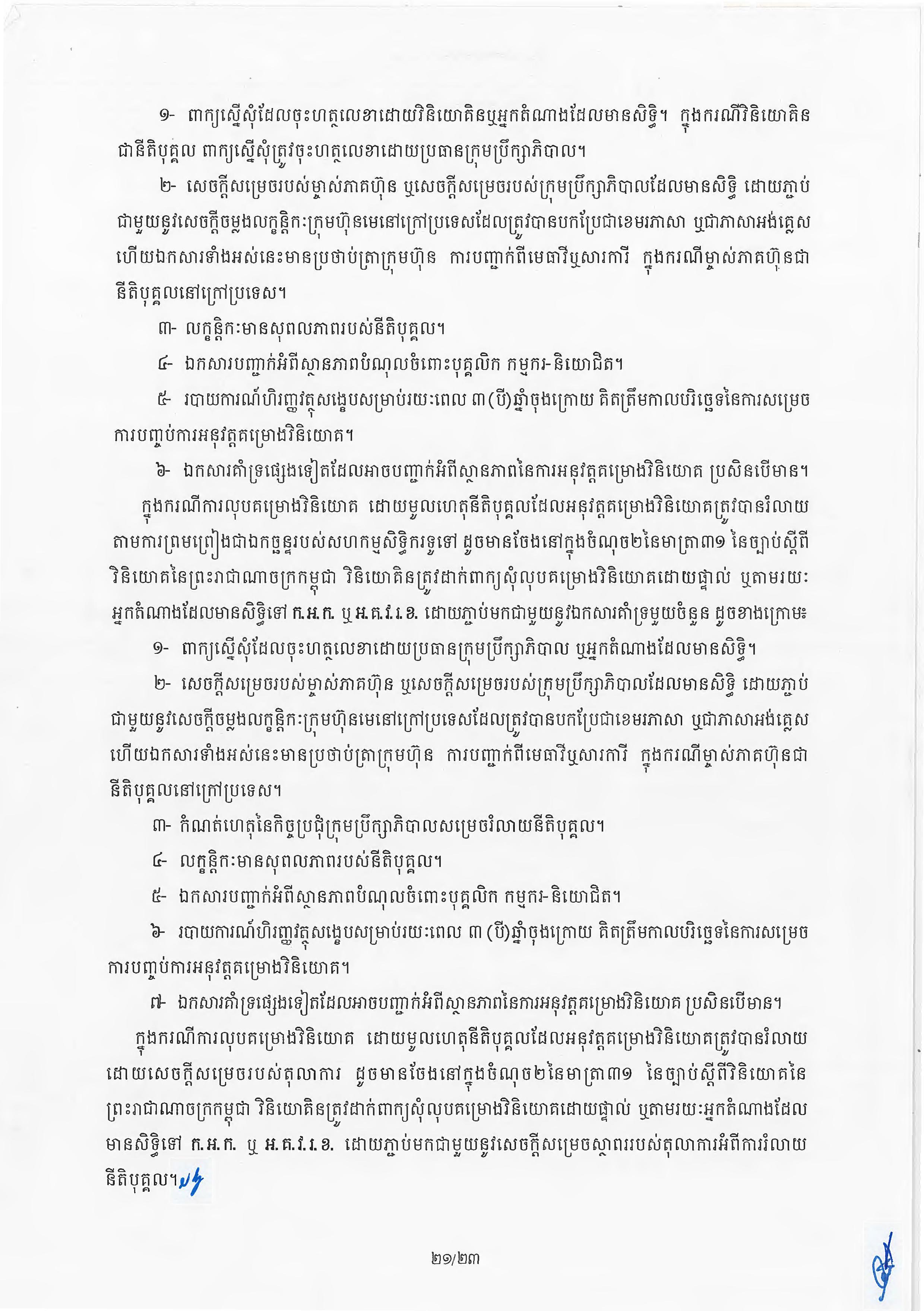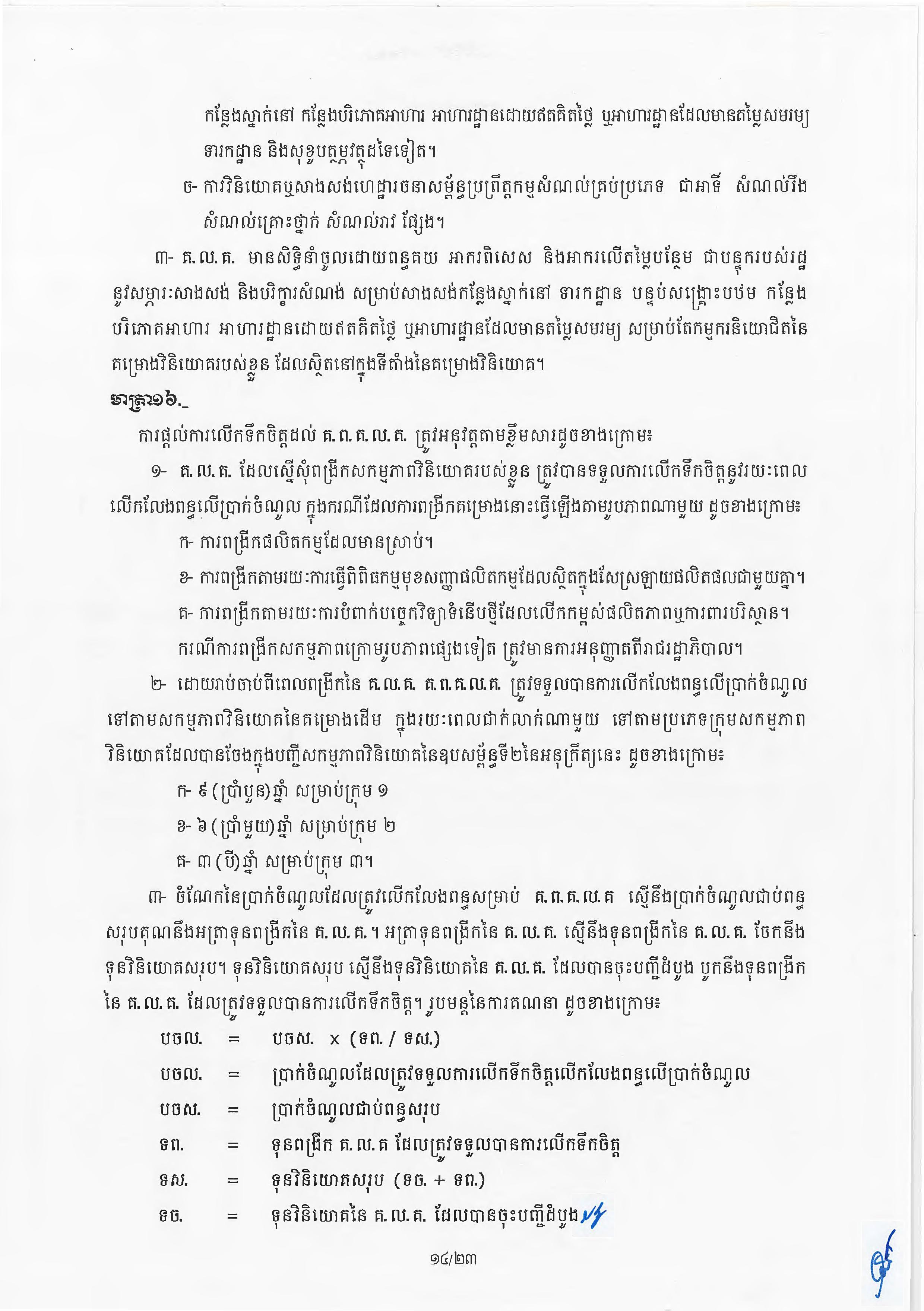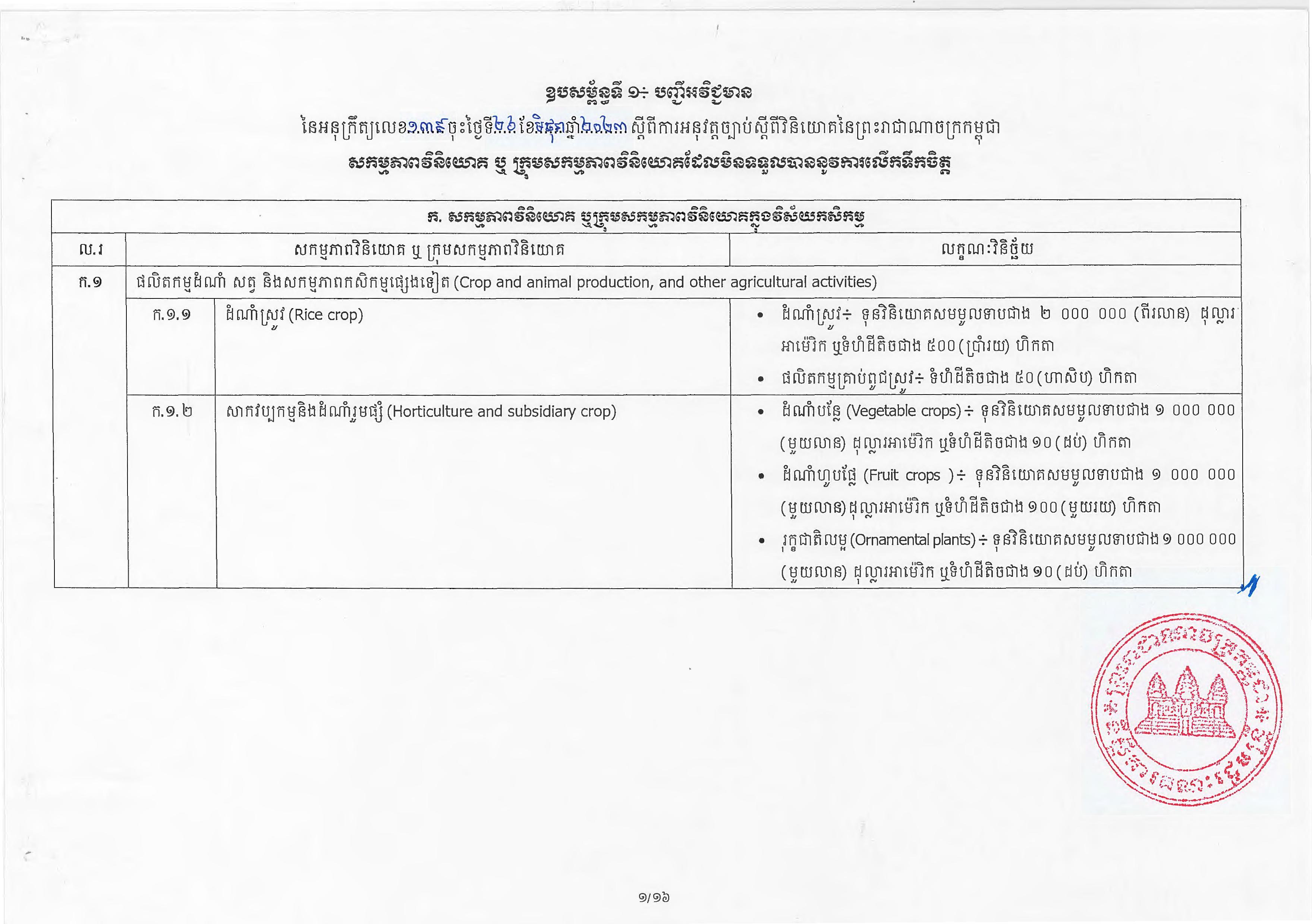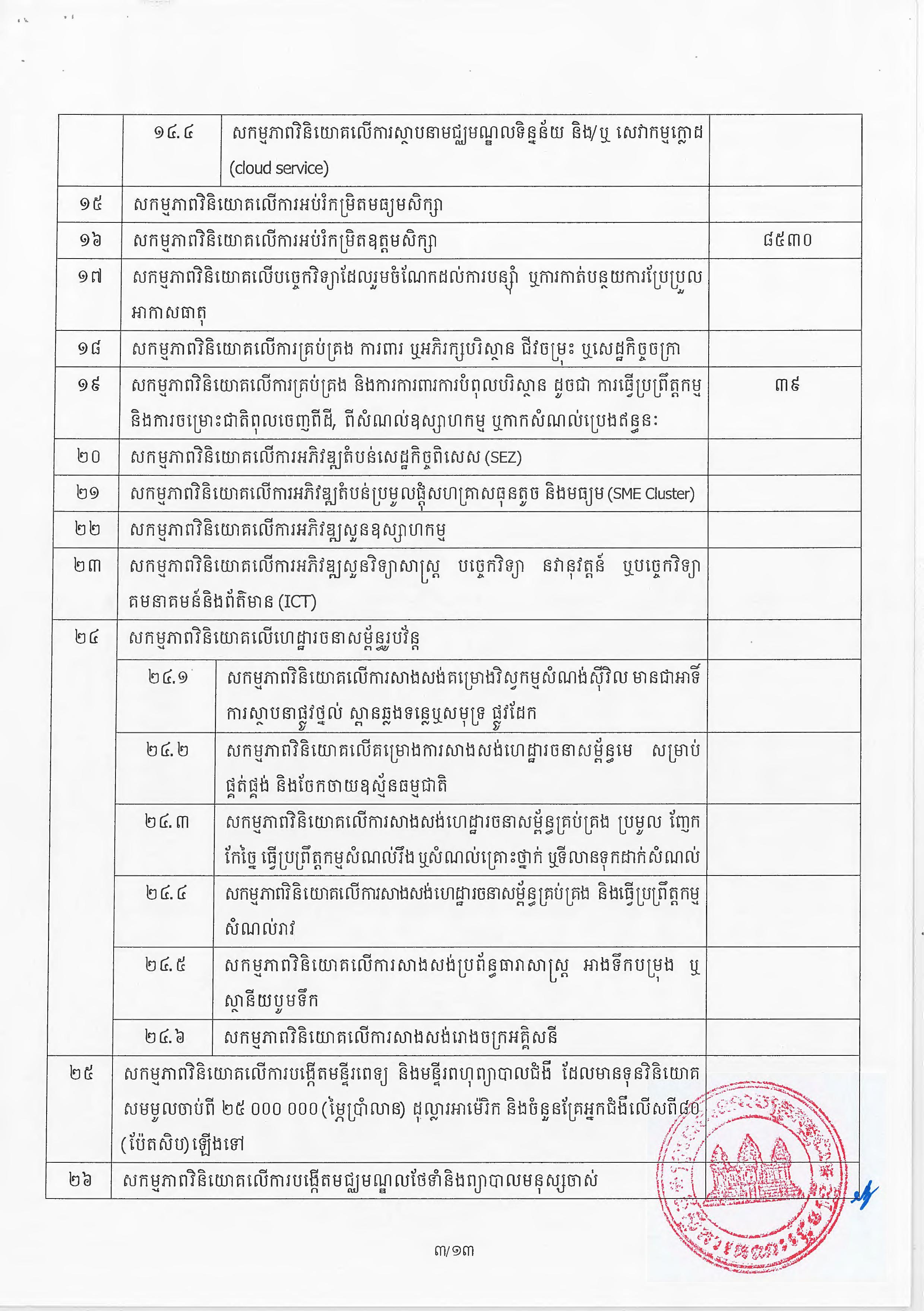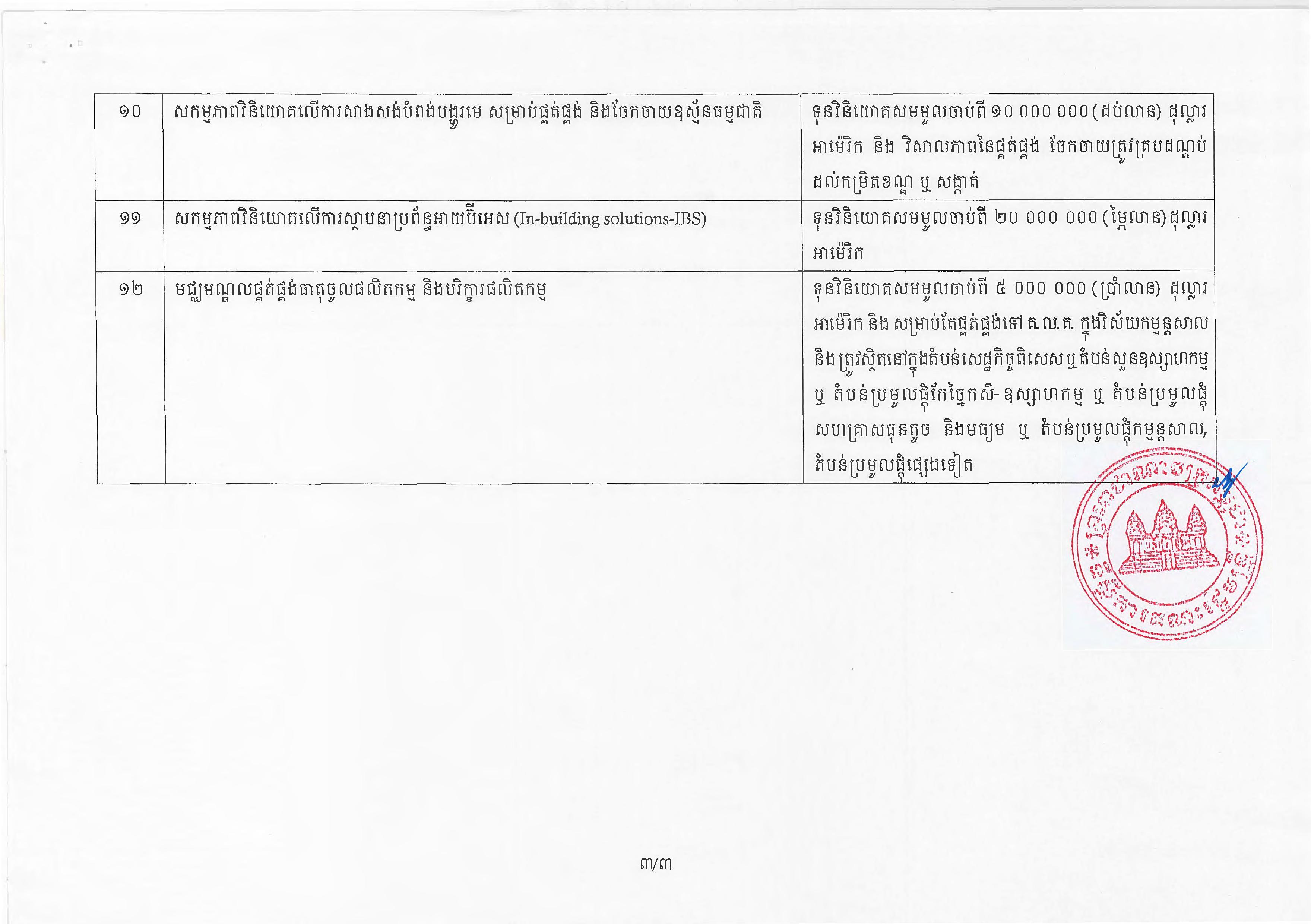 (ភ្នំពេញ)៖ សម្តេចតេជោ ហ៊ុន សែន នាយករដ្ឋមន្ត្រីនៃកម្ពុជា បានចេញអនុក្រឹត្យស្តីពីការអនុវត្ត ច្បាប់ស្តីពីការវិនិយោគនៅព្រះរាជាណាចក្រកម្ពុជា។ នេះបើតាមអនុក្រឹត្យដែលបណ្តាញព័ត៌មាន Fresh News ទទួលបាននៅថ្ងៃទី២៧ ខែមិថុនា ឆ្នាំ២០២៣នេះ៕