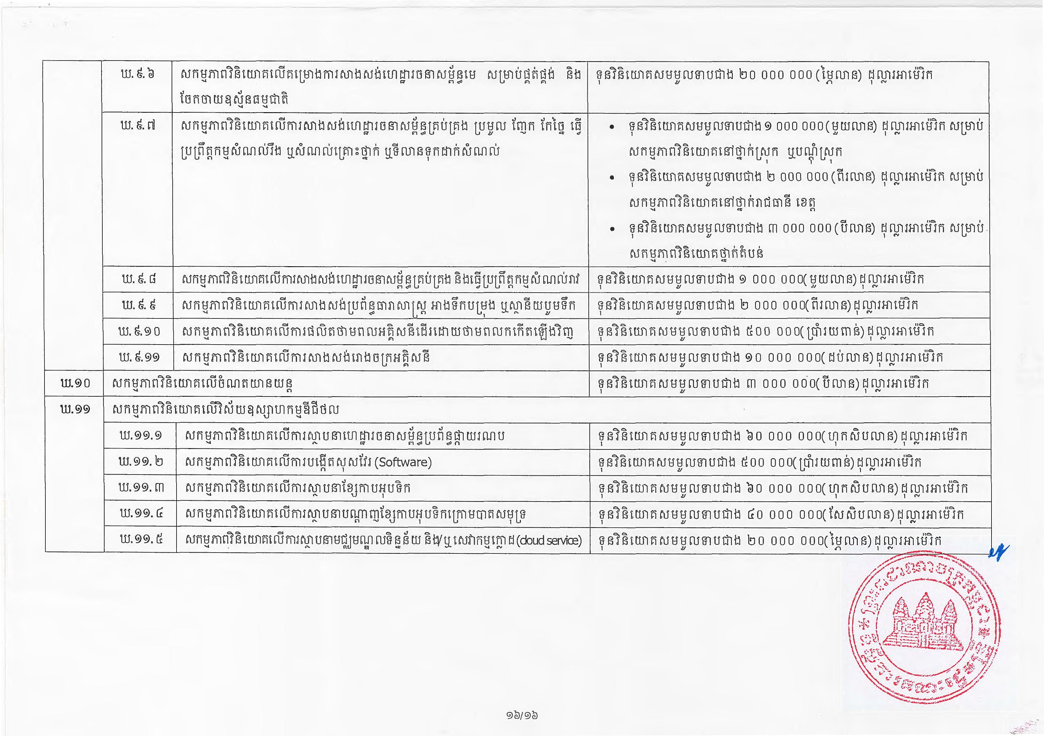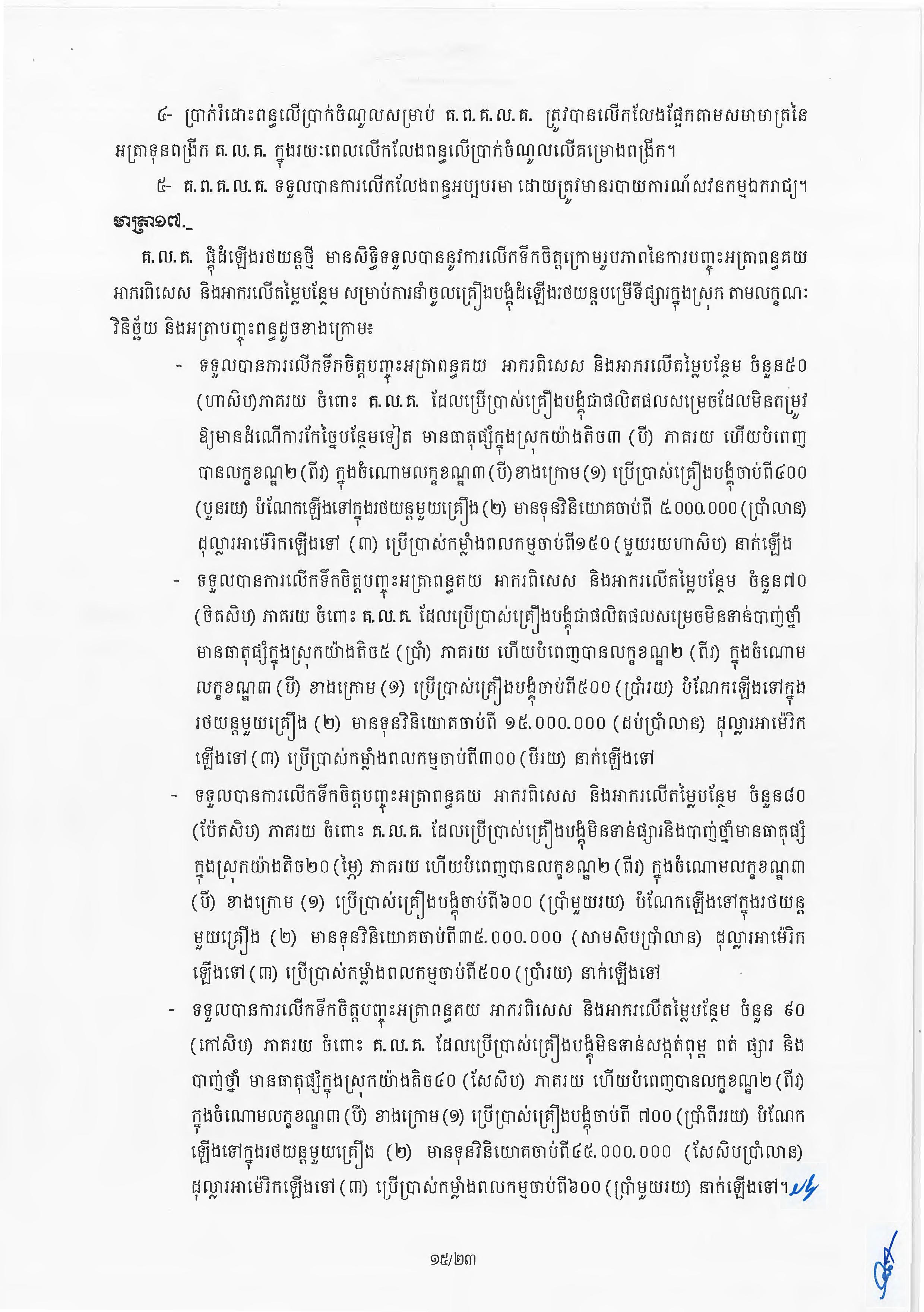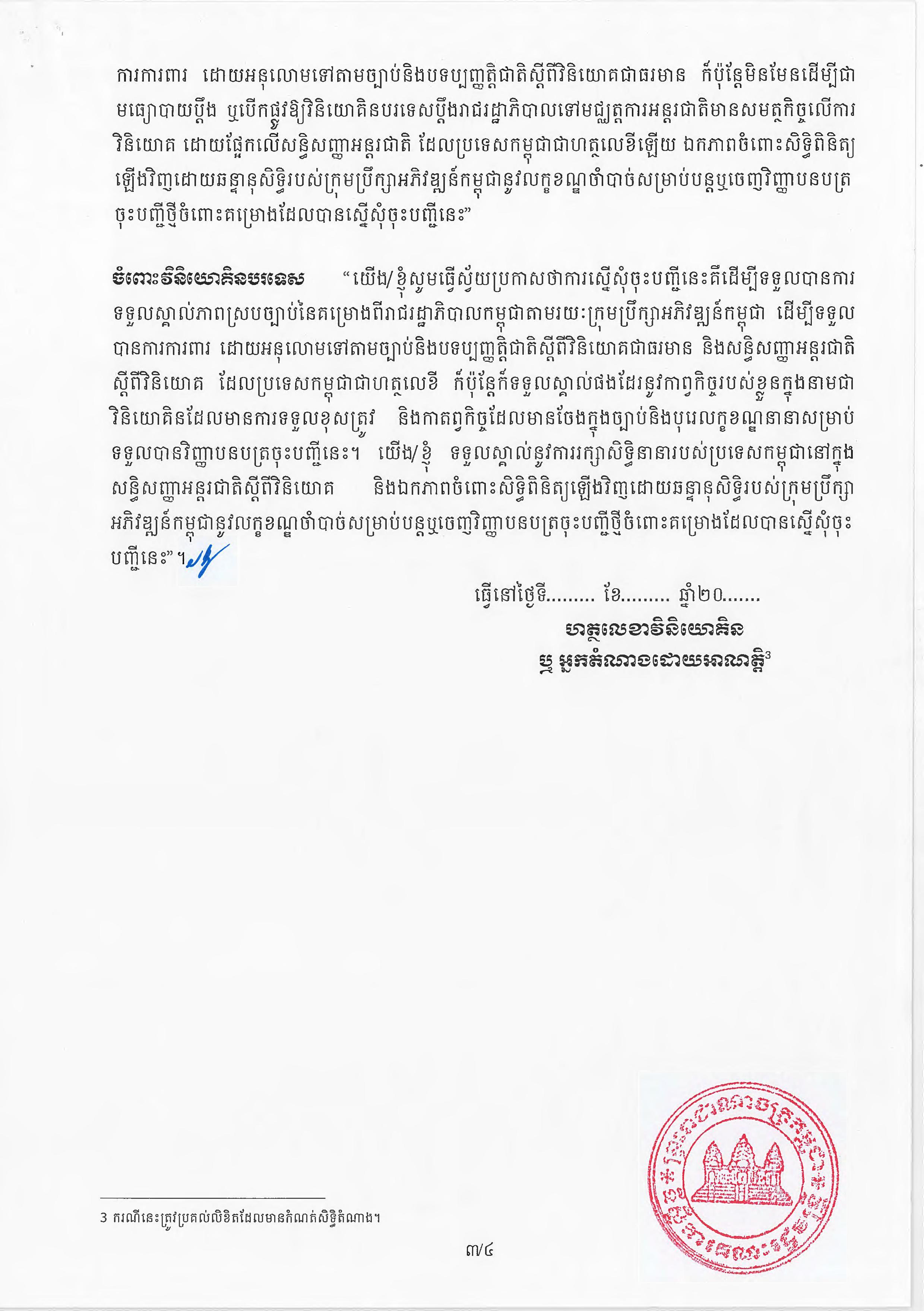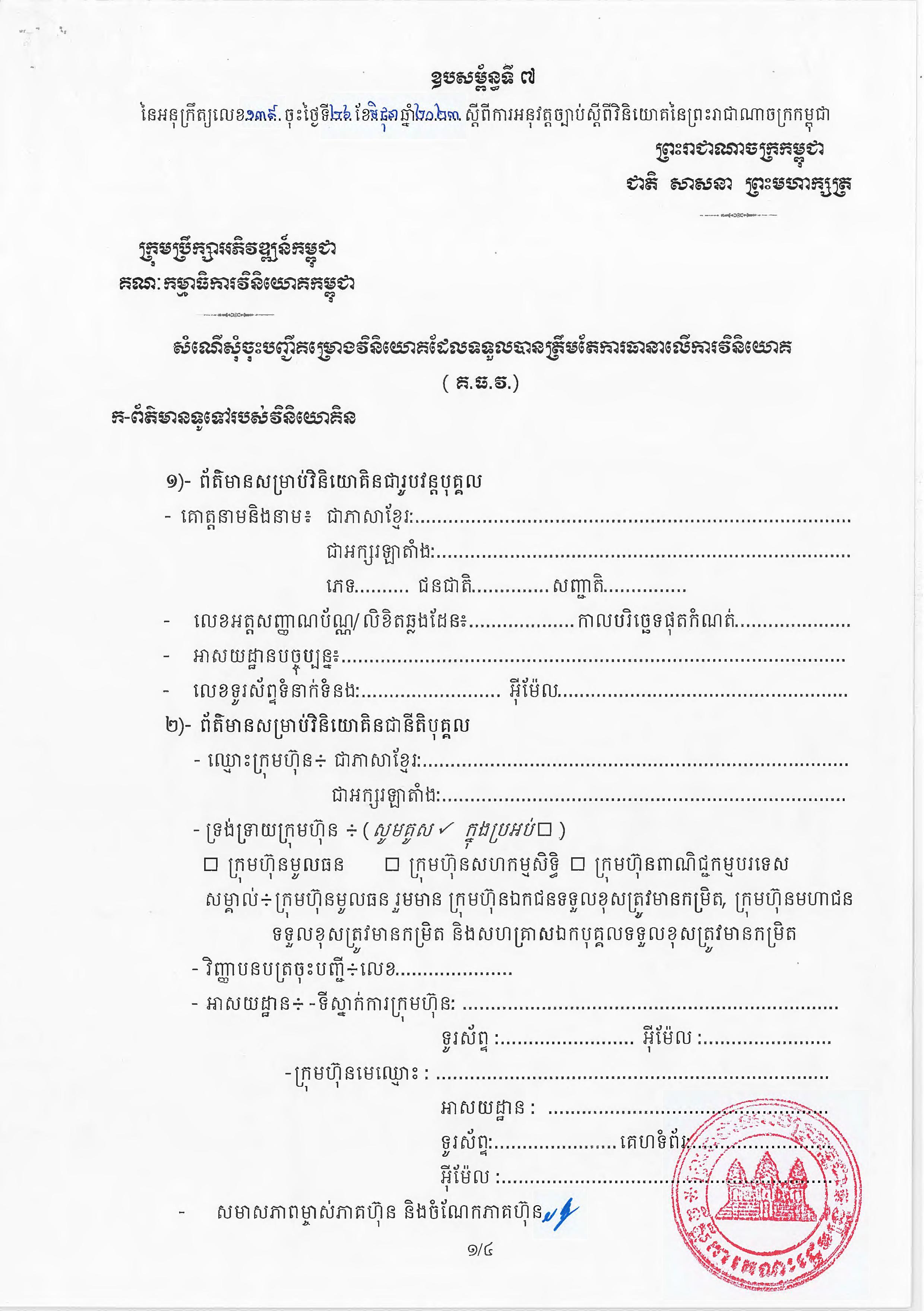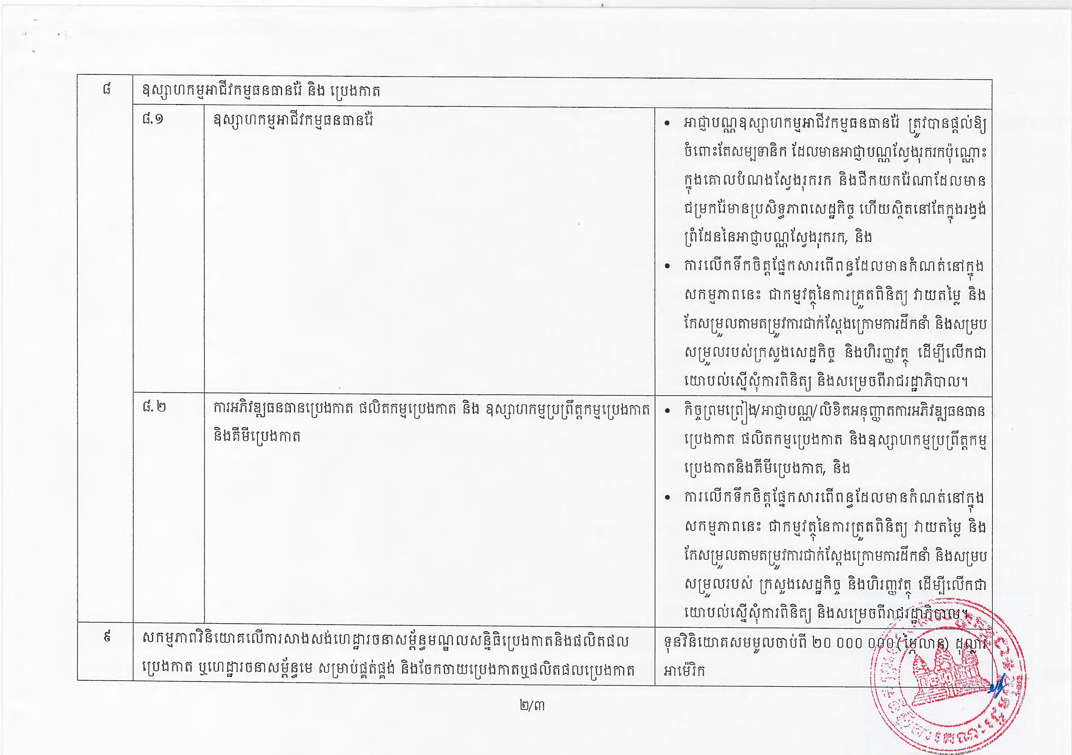 (ភ្នំពេញ)៖ សម្តេចតេជោ ហ៊ុន សែន នាយករដ្ឋមន្ត្រីនៃកម្ពុជា បានចេញអនុក្រឹត្យស្តីពីការអនុវត្ត ច្បាប់ស្តីពីការវិនិយោគនៅព្រះរាជាណាចក្រកម្ពុជា។ នេះបើតាមអនុក្រឹត្យដែលបណ្តាញព័ត៌មាន Fresh News ទទួលបាននៅថ្ងៃទី២៧ ខែមិថុនា ឆ្នាំ២០២៣នេះ៕