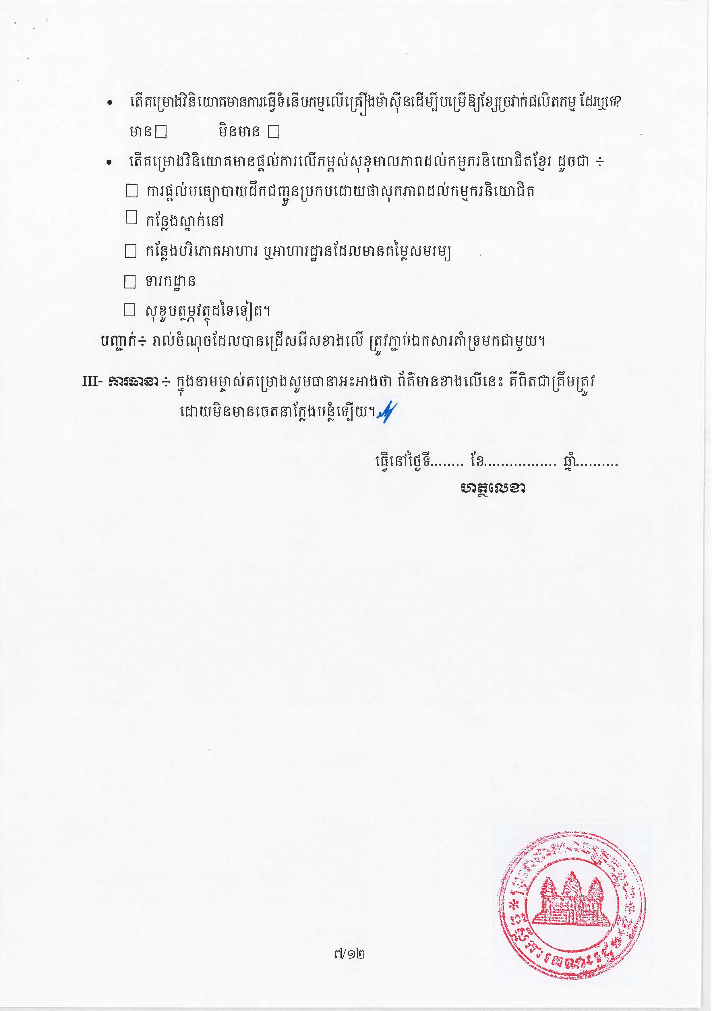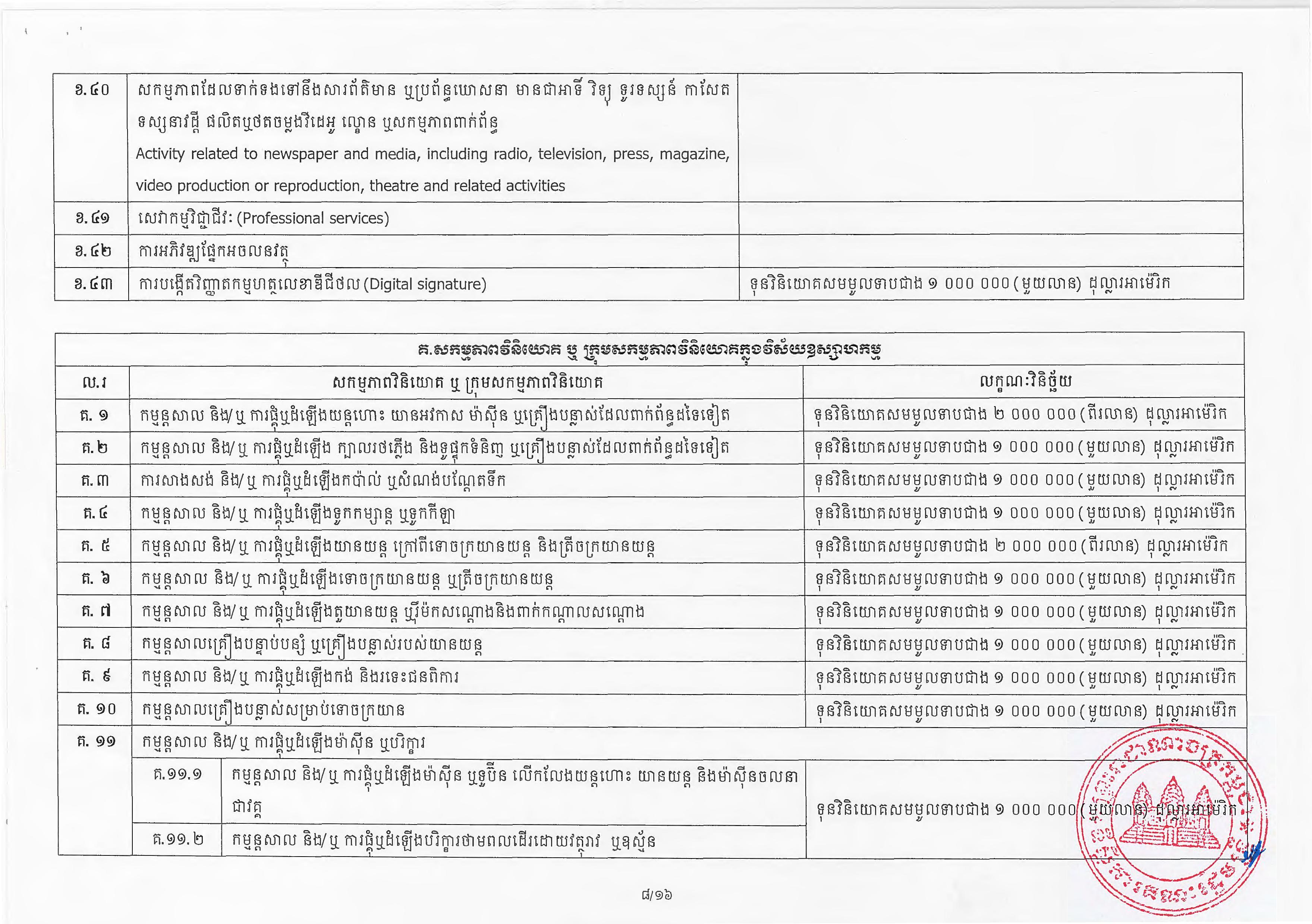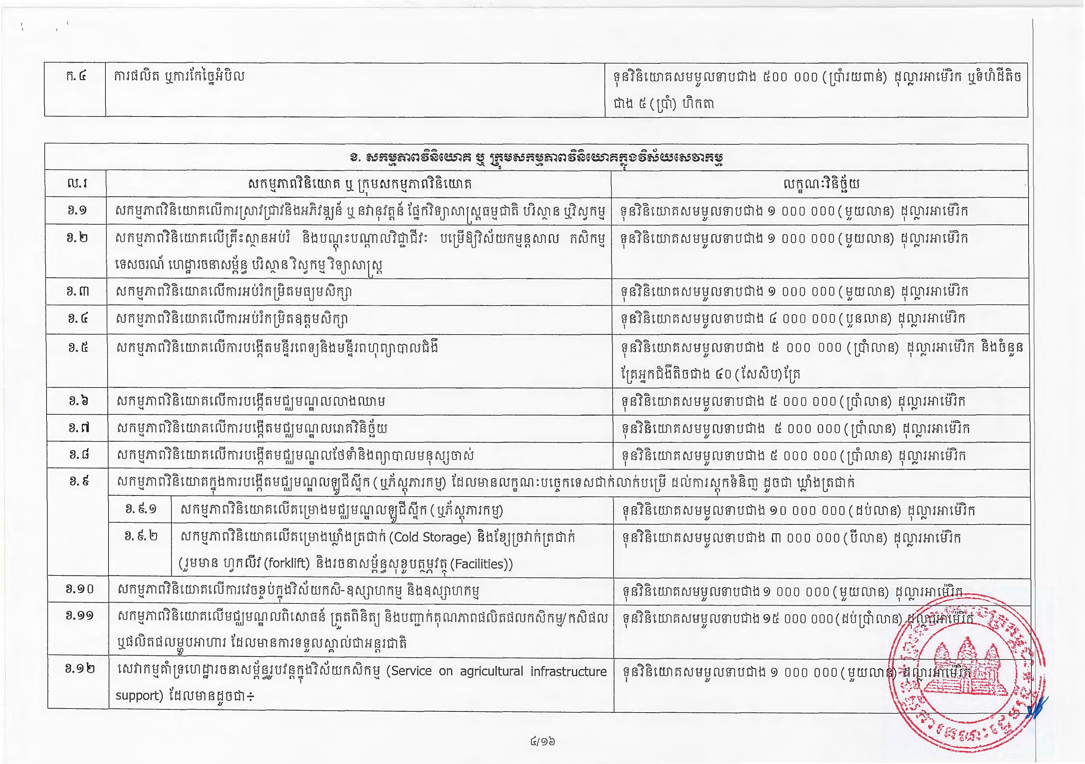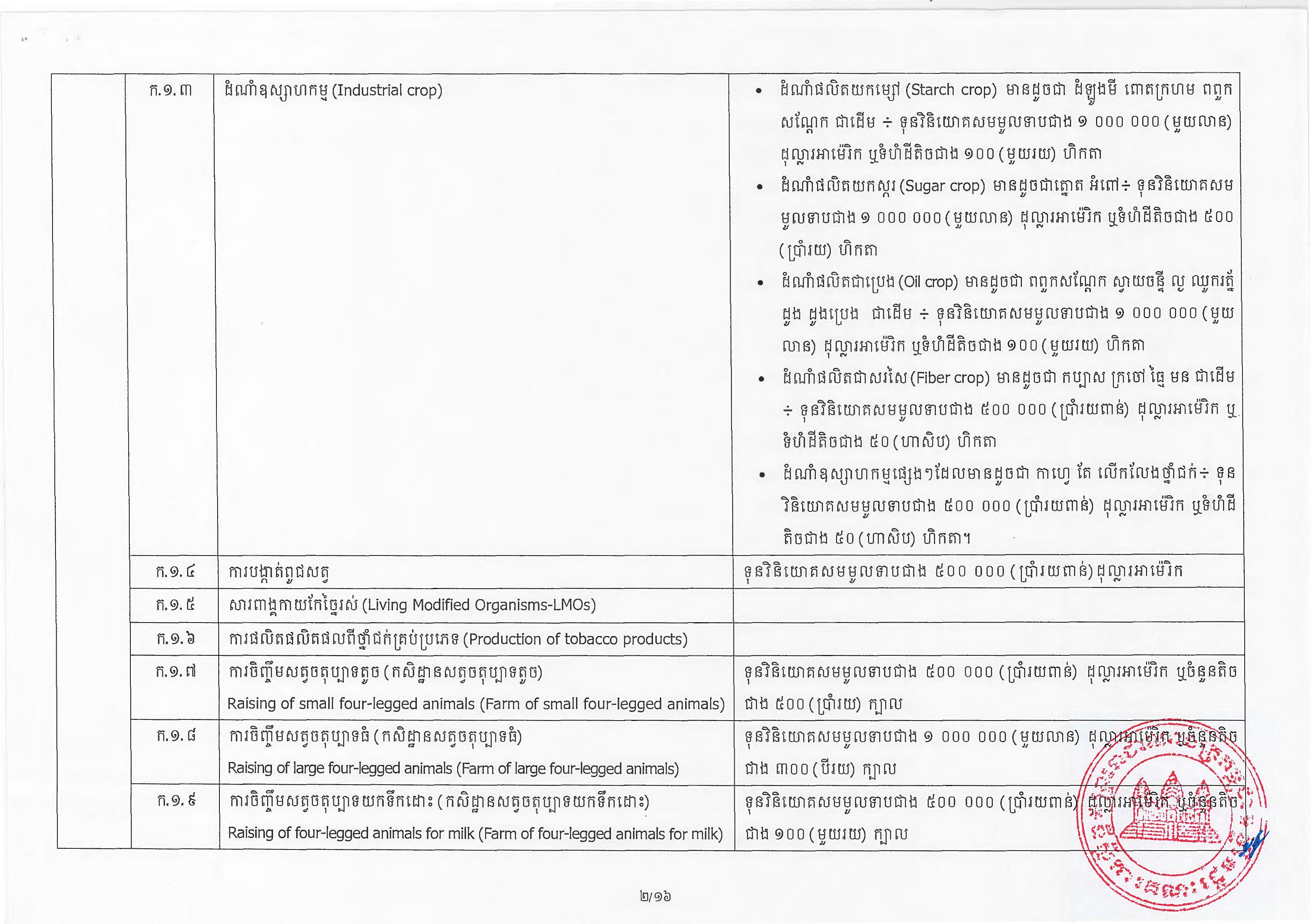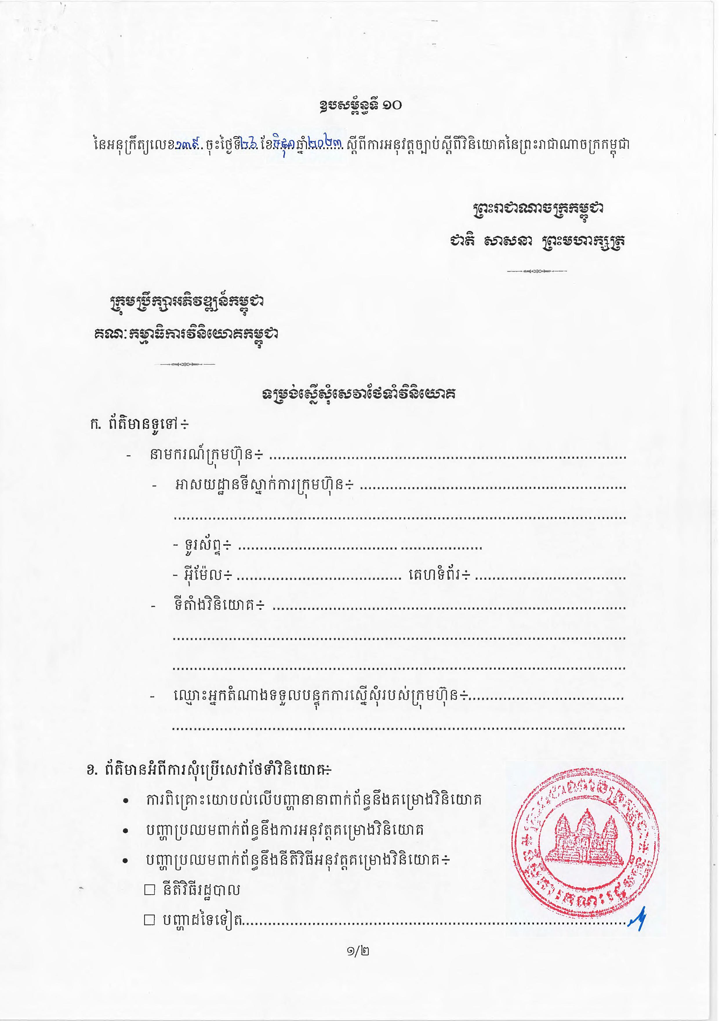 (ភ្នំពេញ)៖ សម្តេចតេជោ ហ៊ុន សែន នាយករដ្ឋមន្ត្រីនៃកម្ពុជា បានចេញអនុក្រឹត្យស្តីពីការអនុវត្ត ច្បាប់ស្តីពីការវិនិយោគនៅព្រះរាជាណាចក្រកម្ពុជា។ នេះបើតាមអនុក្រឹត្យដែលបណ្តាញព័ត៌មាន Fresh News ទទួលបាននៅថ្ងៃទី២៧ ខែមិថុនា ឆ្នាំ២០២៣នេះ៕