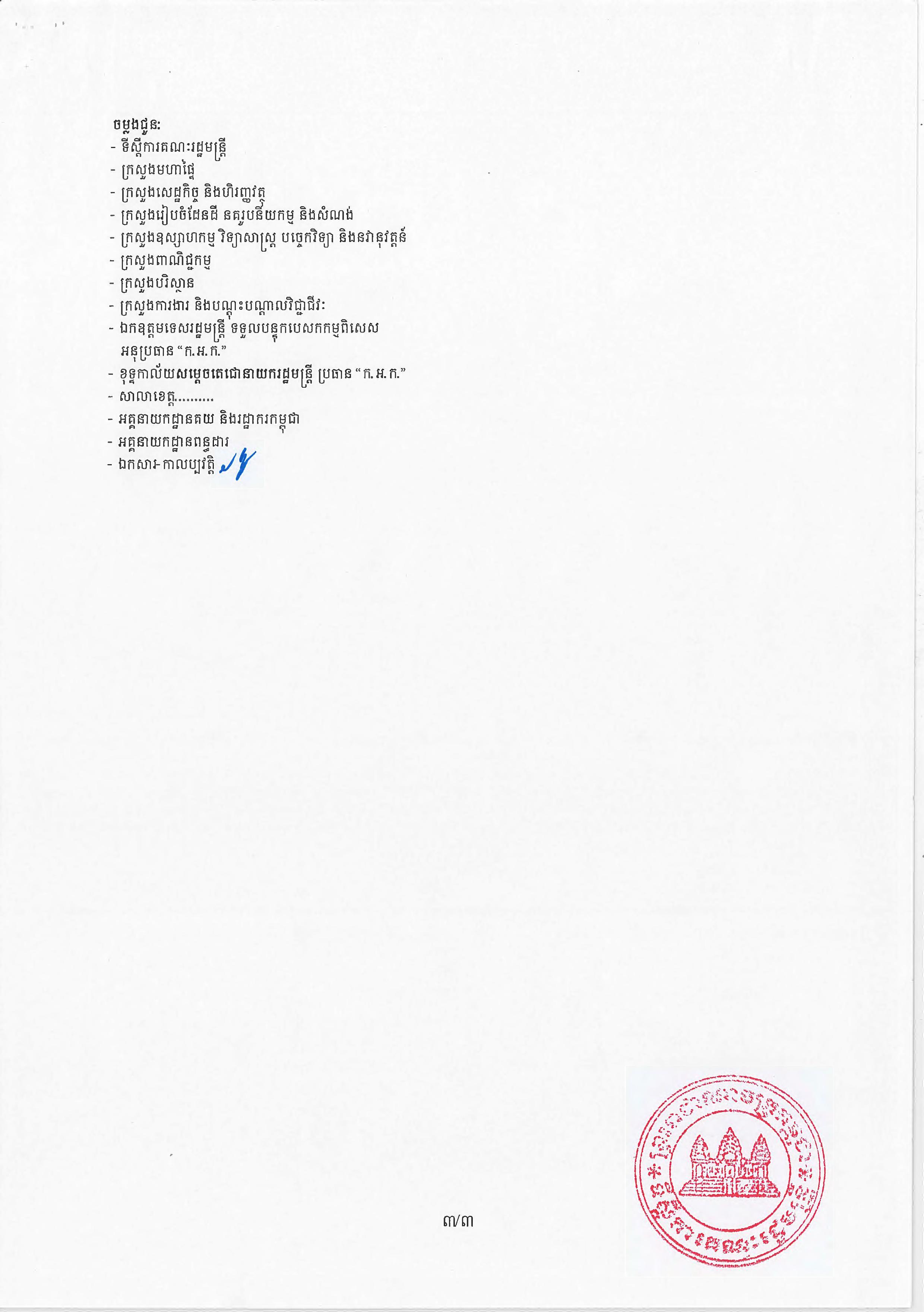 ខាងក្រោមនេះជាអនុក្រឹត្យរបស់សម្តេចតេជោ ហ៊ុន សែន៖