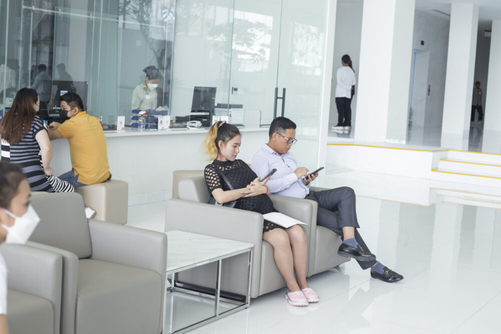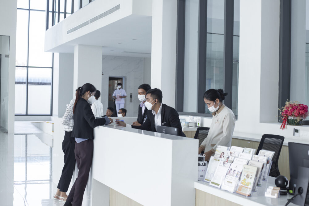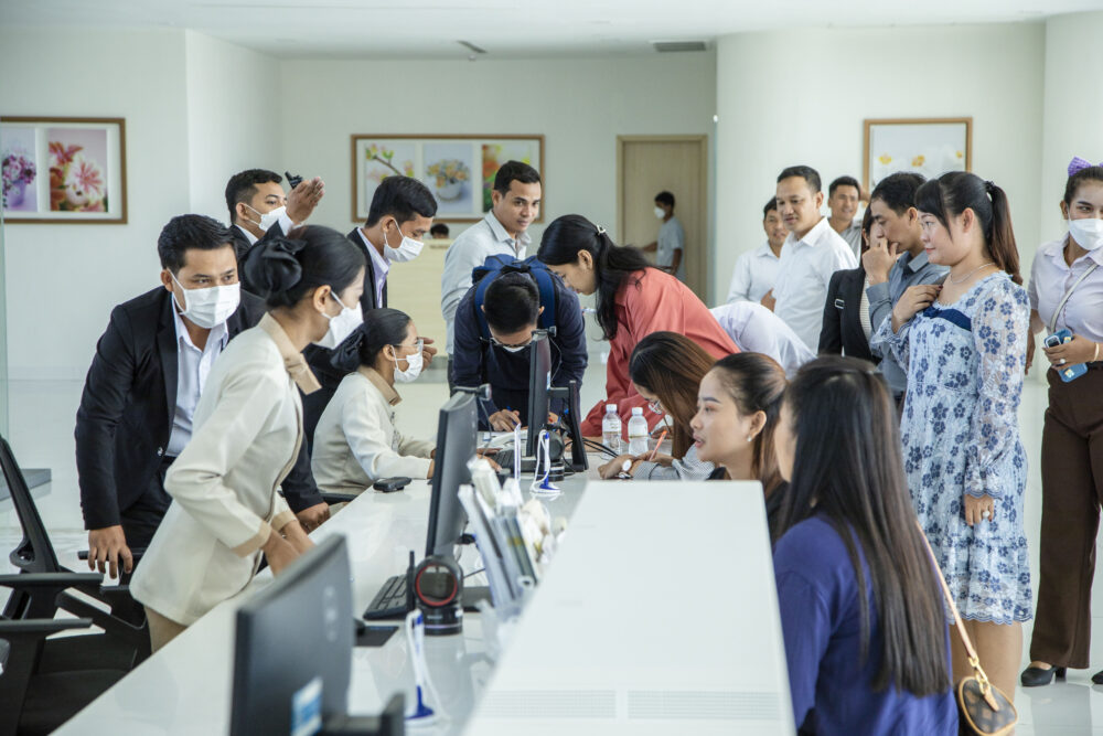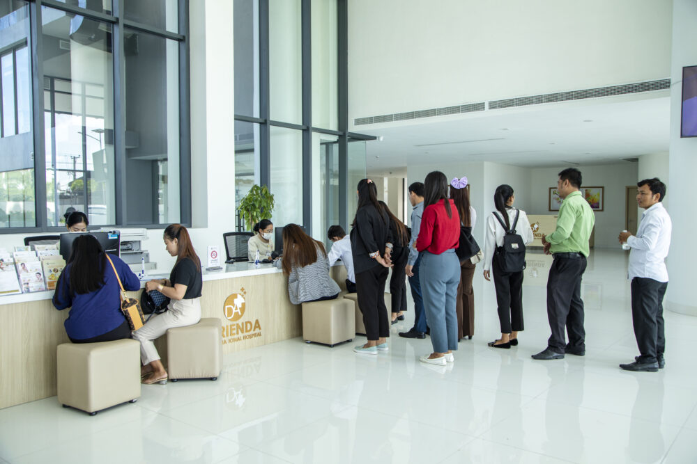 ប្រជាពលរដ្ឋជាច្រើនតំរង់ជួរ និងរង់ចាំ ទទួលយកការផ្តល់ជូនពិសេសលើកញ្ចប់ពិនិត្យសុខភាពទូទៅ របស់មន្ទីរពេទ្យអន្តរជាតិ