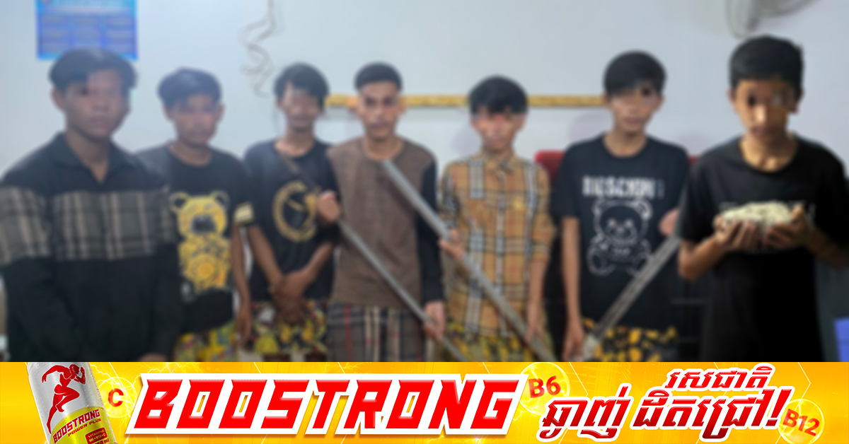 (ភ្នំពេញ)៖ ក្មេងទំនើង២ក្រុម ប្រដាប់ដោយដំបង និងដុំថ្ម បានបើកឆាកប្រយុទ្ធគ្នានៅតាមផ្លូវ ក៏ត្រូវបានកម្លាំងនគរបាលអន្តរាគមន៍ ខណ្ឌពោធិ៍សែនជ័យ សហការជាមួយ កម្លាំងនគរបាលប៉ុស្តិ៍នចោមចៅទី១ ធ្វើការឃាត់ខ្លួន បាន១ក្រុមមានគ្នា៧នាក់ ចំណែកឯ១ក្រុមទៀត មានគ្នា១៤នាក់ បានរត់គេចខ្លួនបាត់ ។ ហេតុការណ៍នេះ បានកើតឡើងនៅថ្ងៃទី១៩ ខែសីហា ឆ្នាំ២០២៥ វេលាម៉ោង០៣៖៤០នាទី នៅតាមផ្លូវក្នុងភូមិត្រពាំងថ្លឹង១ សង្កាត់ចោមចៅទី១ ខណ្ឌពោធិ៍សែនជ័យ រាជធានីភ្នំពេញ។ ជនសង្ស័យដែលត្រូវចាប់ខ្លួនរួមមាន៖១៖ ឈ្មោះ អឿន ស៊ីអៀង ភេទប្រុស អាយុ១៨ឆ្នាំ២៖ ឈ្មោះ ចាន់ សុខបញ្ញា ភេទប្រុស អាយុ១៨ឆ្នាំ៣៖