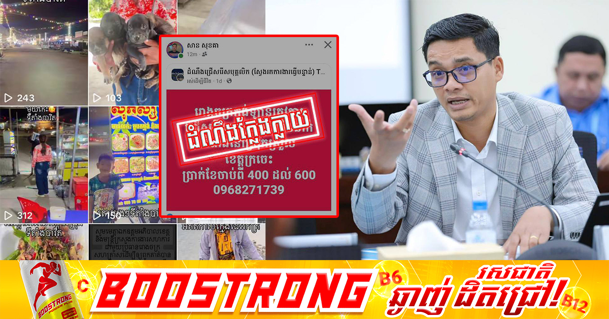 (ភ្នំពេញ)៖ បន្ទាប់ពីពលរដ្ឋខ្មែរត្រឡប់មកពីថៃចូលក្នុងប្រទេសកម្ពុជាវិញ ក្រសួងការងារ និងបណ្តុះបណ្តាលវិជ្ជាជីវៈ បានដាក់ចេញនូវយុទ្ធនាការជាច្រើន ដើម្បីសម្របសម្រួលដល់ការរកការងារធ្វើរបស់ពួកគាត់។ ជាមួយគ្នានោះ ក្រសួងការងារក៏សង្កេតឃើញដែរថា មានក្រុមរកលុយតាមបណ្តាញសង្គម (MMO) ឆ្លៀតឱកាសមួយចំនួន បានយកវីដេអូ ប្រជាជនខ្មែរមិនទាន់មានការងារធ្វើ ទៅផ្សព្វផ្សាយ ដើម្បីបានឡាច និងបានល្បី។ លោក ស៊ុន មេសា អ្នកនាំពាក្យក្រសួងការងារ និងបណ្តុះបណ្តាលវិជ្ជាជីវៈ បានលើកឡើងថា៖ “នេះមិនមែនជាពេលដែលត្រូវប្រើប្រាស់ការមិនមានការងារធ្វើដើម្បីផ្សព្វផ្សាយយកឡាច និងយកល្បីនោះទេ ព្រោះក្រសួងការងារបានដាក់ចេញនូវវិធានការជាច្រើន ដើម្បីរកការងារជូនបងប្អូនពលករខ្មែរ និងពលរដ្ឋខ្មែរដែលទើបត្រឡប់មកពីថៃ”។ បន្ថែមពីនេះ អ្នកនាំពាក្យរូបនេះ បានគូសបញ្ជាក់ថា៖ “ដើម្បីជួយពលករ ក៏ដូចជាពលរដ្ឋខ្មែរដែលទើបត្រឡប់មកពីថៃ ក្រសួងការងារបានដាក់ចេញនូវយុទ្ធនាការជាច្រើន ដូចជាការចាំទទួលពលករ និងណែនាំពីឱកាសការងារ