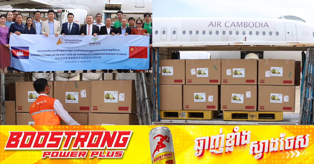 (ភ្នំពេញ)៖ កម្ពុជា បានចាប់ផ្ដើមសាកល្បងនាំចេញផ្លែឈើទុរេន ជាលើកដំបូង ទៅកាន់ខេត្ដហឺណាន ប្រទេសចិន តាមរយៈជើងហោះហើរ របស់ក្រុមហ៊ុនអាកាសចរណ៍ជាតិកម្ពុជា (Ari Cambodia) នៅរសៀលថ្ងៃទី០៨ ខែសីហា ឆ្នាំ២០២៥នេះ។ ថ្លែងប្រាប់ក្រុមអ្នកសារព័ត៌មាន លោក បួន សារៈមុនី រដ្ឋលេខាធិការក្រសួងពាណិជ្ជកម្ម បានបញ្ជាក់ថា ក្នុងដំណាក់កាល សាកល្បងជាលើកដំបូងនេះ មានផ្លែទុរេនចំនួន២តោន បាននាំចេញទៅកាន់ប្រទេសចិន ហើយចំនួននេះ មិនមែនជាចំនួនជាក់លាក់នោះទេ គឺវានឹងកើនឡើងជាបន្ដបន្ទាប់ តាមការបញ្ជាទិញពីភាគីចិន។ លោក បួន សារៈមុនី បានថ្លែងថា «ខ្ញុំគិតថា ការនាំចេញតាមផ្លូវអាកាស ជាលើកទីដំបូងនេះ ជាមធ្យោបាយមួយមានប្រសិទ្ធភាព ហើយចម្ងាយដឹកជញ្ជូនពីកម្ពុជាទៅចិន