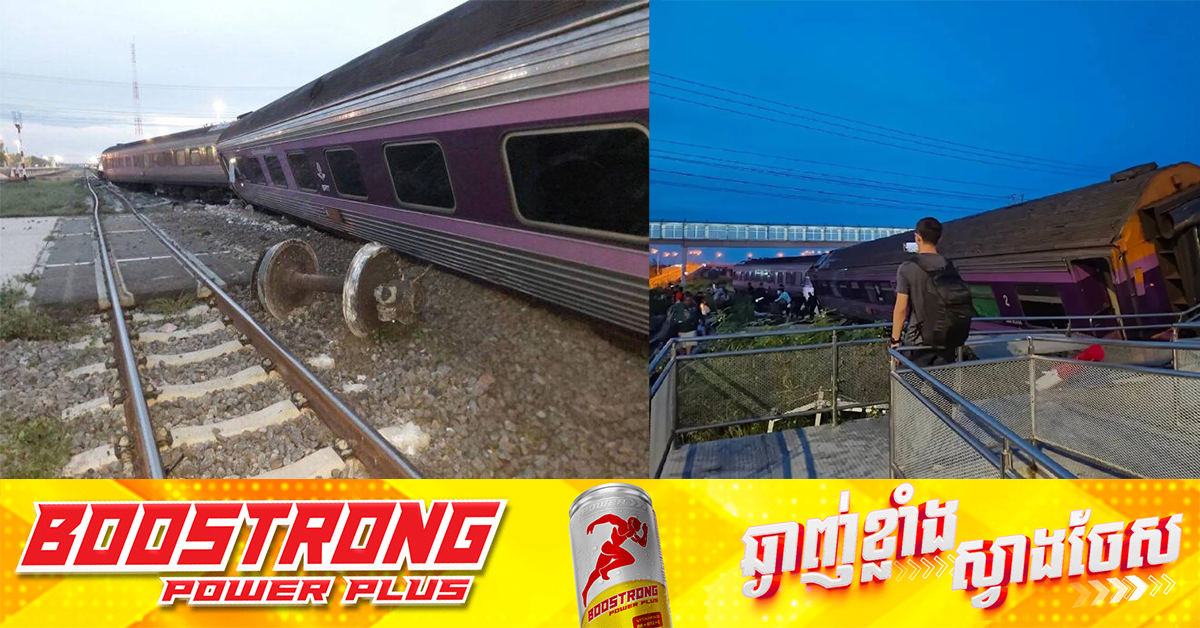 (បាងកក)៖ នាថ្ងៃសៅរ៍ ទី៩ ខែសីហានេះ រថភ្លើងដឹកអ្នកដំណើរ១ខ្សែ បានក្រឡាច់ធ្លាក់ចេញពីផ្លូវនៅស្រុក Kui Buri ខេត្ត Prachuap Khiri Khan ក្នុងប្រទេសថៃ ជាហេតុនាំឱ្យមនុស្សមួយចំនួនរងរបួស។ នេះបើតាមការចេញផ្សាយដោយ កាសែតថៃ The Nation។ ហេតុការណ៍ខាងលើ បានកើតឡើងកាលពីខ្ទង់ម៉ោង៥ព្រឹក ក្បែរស្ថានីយ Kui Buri។ រថភ្លើងមួយខ្សែនោះ មានគោលដៅឆ្ពោះទៅទីក្រុងបាងកក។ ទូរថភ្លើង៣កំណត់បានធ្លាក់ចេញពីផ្លូវ បណ្តាលឱ្យអ្នកដំណើរជិះក្នុងនោះភ័យស្លន់ស្លោ។ ការពិនិត្យជាបឋមរបស់អាជ្ញាធរ រកឃើញថា មានអ្នកដំណើរមួយចំនួនរងរបួស ប៉ុន្តែមិនទាន់អាចកំណត់តួលេខជាក់លាក់នៅឡើយទេ ហើយក៏មិនទាន់ច្បាស់ថា មានមនុស្សសរុបប៉ុន្មាននាក់ ដែលធ្វើដំណើរលើរថភ្លើងផងដែរ។ គួរបញ្ជាក់ថា