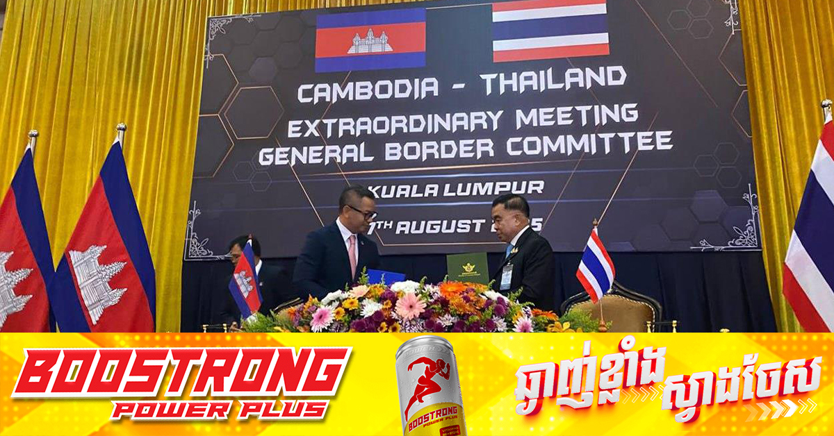 (ម៉ាឡេស៊ី)៖ ក្នុងកិច្ចប្រជុំវិសាមញ្ញ នៃគណៈកម្មាធិការព្រំដែនទូទៅ កម្ពុជា-ថៃ (Extraordinary GBC Meeting) ដែលធ្វើឡើង នាទីក្រុងគួឡារឡាំពួរ ប្រទេសម៉ាឡេស៊ី នៅរសៀលថ្ងៃទី០៧ ខែសីហា ឆ្នាំ២០២៥នេះ ភាគីទាំងពីរ បានសម្រេចឯកភាពគ្នា មិនបង្កើនកម្លាំងតាមបណ្តោយព្រំដែនកម្ពុជា-ថៃ ទៀតនោះទេ។ ក្នុងអនុស្សារណៈការព្រមព្រៀង បានបញ្ជាក់ថា «ភាគីទាំងពីរ យល់ស្របមិនបង្កើនចំនួនកងកម្លាំង នៅតាមបណ្តោយព្រំប្រទល់ទាំងស្រុងរវាង កម្ពុជា-ថៃ។ ការដាក់កម្លាំងបន្ថែមណាមួយ មុខជានឹងបង្កើនភាពតានតឹង ហើយជះផលប៉ះពាល់អវិជ្ជមានចំពោះកិច្ចប្រឹងប្រែងរយៈពេលវែង ដើម្បីបន្ធូរបន្ថយស្ថានការណ៍។»។ ក្នុងអនុស្សារណៈការព្រមព្រៀង បានបន្ថែមទៀតថា «ភាគីទាំងពីរឯកភាពគ្នា មិនប្រព្រឹត្តសកម្មភាពបង្កហេតុណាមួយឡើយ ដែលអាចដុតបញ្ឆេះភាពតានតឹង។ នេះរួមបញ្ចូលទាំងការធ្វើសកម្មភាពយោធា ចូលក្នុងដែនអាកាសនិងទឹកដី ឬទីតាំងរបស់ភាគីម្ខាងទៀត គិតត្រឹមបទឈប់បាញ់ចាប់ពីម៉ោង២៤៖០០នាទី ថ្ងៃទី២៨
