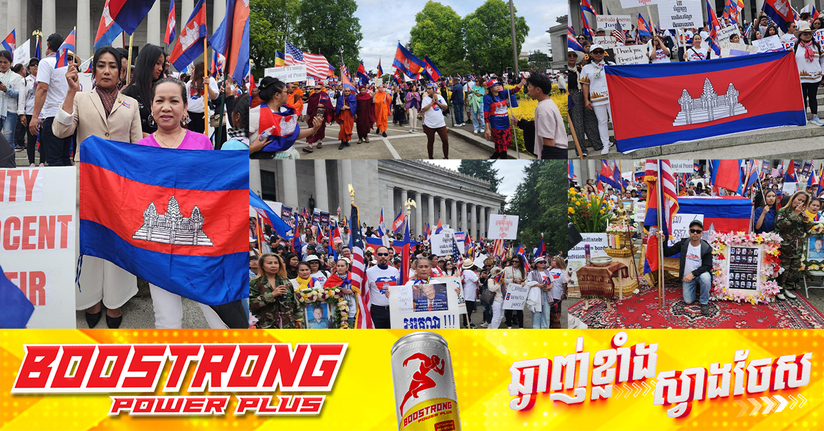 (វ៉ាស៊ីនតោន)៖ ប្រជាពលរដ្ឋខ្មែរ និងព្រះសង្ឃរស់នៅក្នុងរដ្ឋវ៉ាស៊ីនតោនស្ទេត សហរដ្ឋអាមេរិក ចំនួនប្រមាណ១,៨០០អង្គ/នាក់ កាលពីចុងសប្ដាហ៍នេះ បានធ្វើការជួបជុំមហាគ្រួសារខ្មែរនៅមុខ Washington State Capitol Building and Campus ដើម្បីសម្តែងការថ្លែងអំណរអរគុណប្រធានាធិបតីសហរដ្ឋអាមេរិក ដូណាល់ ត្រាំ ដែលបានជួយសម្របសម្រួល ឲ្យមានបទឈប់បាញ់ក្នុងជម្លោះព្រំដែនរវាងកងទ័ពថៃ-កម្ពុជា។ លោក អ៊ុំ វុត្ថា និង លោកស្រី អ៊ុំ រ៉ាឌី ដែលជាតំណាង បានឲ្យដឹងថា ការជួបជុំមហាគ្រួសារខ្មែរនេះ ធ្វើឡើងមានគោលបំណងសំខាន់ៗចំនួន៣ផ្សេងទៀត៖ *ទី១៖ ប្រឆាំងការឈ្លានពាន និងហិង្សាដោយអាវុធពីភាគីប្រទេសថៃ*ទី២៖ ទាមទារឲ្យមានការដោះលែងកងទ័ពទាំង ១៨រូប ដែលកងទ័ពថៃចាប់ក្រោយមានបទឈប់បាញ់