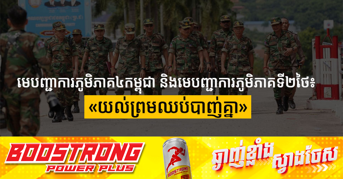(បាងកក)៖ សារព័ត៌មានថៃ The Nation នៅថ្ងៃអង្គារ ទី២៩ ខែកក្កដា បានរាយការណ៍ថា កងទ័ពថៃទទួលស្គាល់បទឈប់បាញ់នៅទូទាំងផ្នែកទាំង៣ នៃព្រំដែន មុនកិច្ចចរចា GBC ដែលគ្រោងនឹងធ្វើឡើងនៅថ្ងៃទី៤ ខែសីហាខាងមុខ។ The Nation ដោយផ្អែកលើបញ្ជាក់ពីកងទ័ពថៃ បានឱ្យដឹងថា ក្រុមមេបញ្ជាការនៅក្នុងផ្នែកទាំង៣នៃព្រំដែនរវាងកម្ពុជា និងថៃ បានឯកភាពគ្នាទៅវិញទៅមកលើបទឈប់បាញ់បន្ទាន់ និងហាមឃាត់ចលនាកងទ័ព ខណៈរង់ចាំកិច្ចប្រជុំ GBC។ កាសែតថៃ The Nation រាយការណ៍ថា មេបញ្ជាការភូមិភាគ២ របស់ថៃ ឧត្តមសេនីយ៍ Boonsin Padklang បានជួបមេបញ្ជាការភូមិភាគ៤ របស់កម្ពុជា