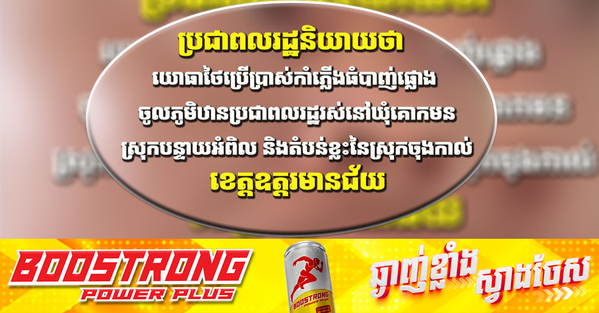 (ឧត្តរមានជ័យ)៖ ប្រជាពលរដ្ឋស្លូតត្រង់របស់កម្ពុជា បានឱ្យដឹងថា ការប្រយុទ្ធគ្នារវាងកងទ័ពកម្ពុជា-ថៃ ដែលចាប់ផ្តើមឡើង នៅព្រឹកថ្ងៃទី២៤ ខែកក្កដា ឆ្នាំ២០២៥ ទាហានឈ្លានពានរបស់ថៃ បានប្រើប្រាស់កាំភ្លើងធំបាញ់ផ្លោងចូលទឹកដីកម្ពុជា ក្នុងនោះមានទាំងលំនៅឋានរបស់ពួកគាត់។ ប្រជាពលរដ្ឋដដែលបានឱ្យដឹងថា ទាហានថៃបាញ់ផ្លោងគ្រាប់មកដល់ចូលភូមិឋាន របស់ប្រជាពលរដ្ឋរសនៅឃុំគោកមន ស្រុកបន្ទាយអំពិល និងតំបន់ខ្លះនៃស្រុកចុងកាល់ ខេត្តឧត្តរមានជ័យ។ សូមជម្រាបថា ការប្រយុទ្ធគ្នារវាងកម្ពុជា និងថៃ បង្កឡើងដោយទាហានថៃ បានឈ្លានពាន និងបាញ់ប្រហារមុនមកលើទាហានកម្ពុជា ដោយបង្ខំឱ្យទាហានកម្ពុជាត្រូវបាញ់តបតវិញ ដើម្បីការពារខ្លួន៕ ផ្ដល់សិទ្ធិដោយ៖ Fresh News