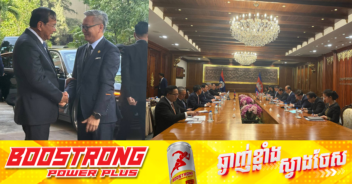 (ភ្នំពេញ)៖ ឧបនាយករដ្ឋមន្ត្រីប្រាក់ សុខុន រដ្ឋមន្ត្រីការបរទេស និងសហប្រតិបត្តិការអន្តរជាតិកម្ពុជា នៅរសៀល ថ្ងៃទី២៤ ខែកក្កដា ឆ្នាំ២០២៥នេះ បានជួបពិភាក្សាទ្វេភាគីជាមួយ លោក ថងសាវណ្ណ ភូមវិហាន (Thongsavanh PHOMVIHANE) រដ្ឋមន្ត្រីការបរទេសនៃសាធារណរដ្ឋប្រជាធិបតេយ្យប្រជាមានិត ឡាវ ដែលមកបំពេញទស្សនកិច្ចផ្លូវការនៅកម្ពុជា រយៈពេល២ថ្ងៃ ស្របពេលដែលកងទ័ពកម្ពុជា-ថៃ ប្រយុទ្ធគ្នានៅព្រំដែន ដែលការផ្ទុះអាវុធនេះផ្តើមឡើងដោយកងទ័ពថៃ។ ផ្ដល់សិទ្ធិដោយ៖ Fresh News