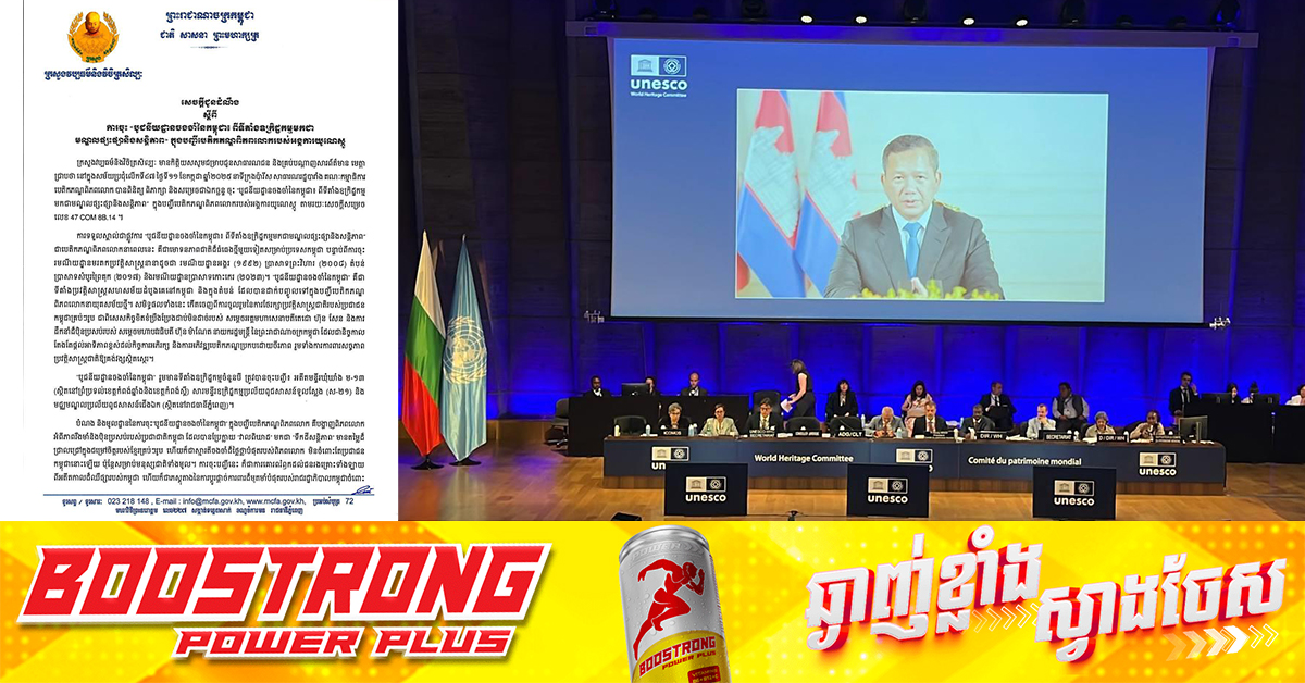 (ភ្នំពេញ)៖ ក្រសួងវប្បធម៌ និងវិចិត្រសិល្បៈ បានចេញសេចក្តីជូនដំណឹង ស្តីពី ការចុះបូជនីយដ្ឋានចងចាំនៃកម្ពុជា៖ ពីទីតាំងឧក្រិដ្ឋកម្មមកជាមណ្ឌលផ្សះផ្សានិងសន្តិភាព ក្នុងបញ្ជីបេតិកភណ្ឌពិភពលោក របស់អង្គការយូណេស្កូ នៅទីក្រុងប៉ារីស សាធារណរដ្ឋបារាំង វេលាម៉ោង ៥:៣៥នាទីរសៀល និងវេលាម៉ោង ១០:៣៥នាទីយប់ នៅព្រះរាជាណាចក្រកម្ពុជា។ ផ្ដល់សិទ្ធិដោយ៖ Fresh News