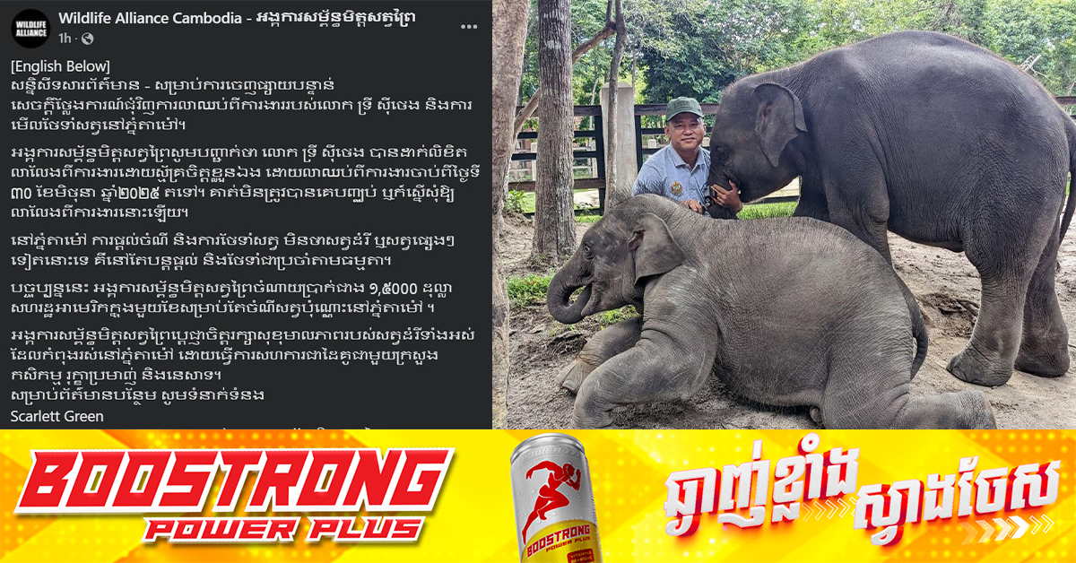 (ភ្នំពេញ)៖ អង្គការសម្ព័ន្ធមិត្តសត្វព្រៃ នៅថ្អៃទី២ ខែកក្កដា ឆ្នាំ២០២៥ បានចេញសេចក្តីថ្លែងការណ៍ជុំវិញការលាឈប់ពីការងាររបស់លោក ទ្រី ស៊ីថេង និងការមើលថែទាំសត្វនៅភ្នំតាម៉ៅ។ បើតាមការបង្ហោះលើគណនីហ្វេកប៊ុកផេក Wildlife Alliance Cambodia-អង្គការសម្ព័ន្ធមិត្តសត្វព្រៃ បានឱ្យដឹងថាលោក ទ្រី ស៊ីថេង បានដាក់លិខិតលាលែងពីការងារដោយស្ម័គ្រចិត្តខ្លួនឯង ដោយលាឈប់ពីការងារចាប់ពីថ្ងៃទី ៣០ ខែមិថុនា ឆ្នាំ២០២៥តទៅ។ គាត់មិនត្រូវបានគេបញ្ឈប់ ឬក៏ស្នើសុំឱ្យលាលែងពីការងារនោះឡើយ។ នៅភ្នំតាម៉ៅ ការផ្តល់ចំណី និងការថែទាំសត្វ មិនថាសត្វដំរី ឬសត្វផ្សេងៗទៀតនោះទេ គឺនៅតែបន្តផ្តល់ និងថែទាំជាប្រចាំតាមធម្មតា។បច្ចុប្បន្ននេះ អង្គការសម្ព័ន្ធមិត្តសត្វព្រៃចំណាយប្រាក់ជាង ១,៥០០០ ដុល្លាសហរដ្ឋអាមេរិកក្នុងមួយខែសម្រាប់តែចំណីសត្វប៉ុណ្ណោះនៅភ្នំតាម៉ៅ។ តាមរយៈសំណេរដដែល អង្គការសម្ព័ន្ធមិត្តសត្វព្រៃប្តេជ្ញាចិត្តរក្សាសុខុមាលភាពរបស់សត្វដំរីទាំងអស់ដែលកំពុងរស់នៅភ្នំតាម៉ៅ