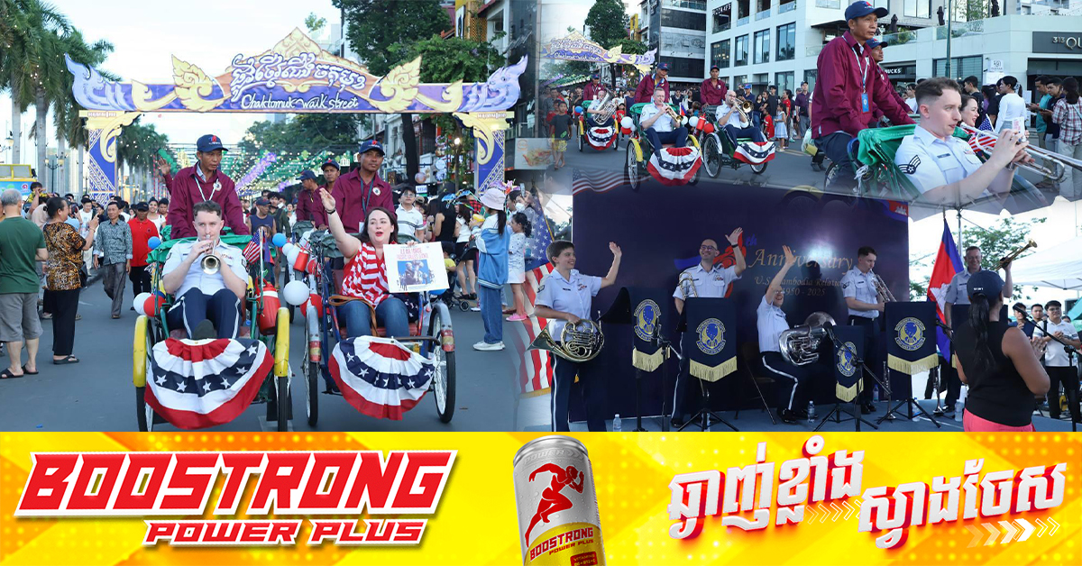 (ភ្នំពេញ)៖ ផ្លូវថ្មើរជើង (Walk Street) នៅរាជធានីភ្នំពេញ ឥឡូវល្បីល្បាញខ្លាំងណាស់ ផ្អើលពេញពិភពលោក រហូតដឹងដល់ក្រុមតន្ត្រីកងទព័ជើងអាកាសសហរដ្ឋអាមេរិក បានមកប្រគុំតន្រ្តីទៀតផង។ រដ្ឋបាលរាជធានីភ្នំពេញ អនុញ្ញាតឲ្យក្រុមតន្ត្រីទ័ពអាកាសអាមេរិកប្រគុំតន្ត្រី នៅផ្លូវថ្មើរជើង (Walk Street) តបតាមការស្នើរសុំរបស់ក្រុមតន្ត្រីកងទ័ពជើងអាកាសសហរដ្ឋអាមេរិក សុំរៀបចំការប្រគុំតន្ត្រីនៅផ្លូវថ្មើរជើង (Walk Street) ដែលធ្វើឡើង នៅយប់ថ្ងៃអាទិត្យទី២៩ ខែមិថុនា ឆ្នាំ២០២៥ នៅចំណុចមុខវត្តឧណ្ណាឡោម នៃផ្លូវថ្មើរជើងរាជធានីភ្នំពេញ។ លោកស្រី ដោ សម្ផស្ស នាយិការរងរដ្ឋបាលរាជធានីភ្នំពេញ និងជាអ្នកនាំពាក្យផងនោះ បានឱ្យដឹងថា ស្របពេលដំណើរទស្សនកិច្ច ចន្លោះពីថ្ងៃទី២៨ ខែមិថុនា ដល់ថ្ងៃទី៤ ខែកក្កដា
