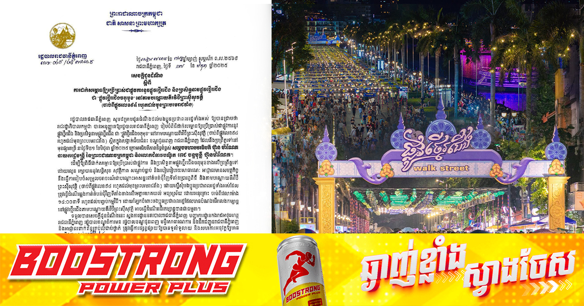 (ភ្នំពេញ)៖ រដ្ឋបាលរាជធានីភ្នំពេញ សូមជម្រាបជូនដំណឹងដល់បងប្អូនប្រជាពលរដ្ឋទាំងអស់ ឱ្យបានជ្រាបថា រាជរដ្ឋាភិបាលបានអនុញ្ញាតឱ្យរដ្ឋបាលរាជធានីភ្នំពេញ រៀបចំពិធីដាក់សម្ពោធឱ្យប្រើប្រាស់ជាផ្លូវការផ្លូវថ្មើរជើង និងប្រសិទ្ធនាមផ្លូវថ្មើរជើង ជា «ផ្លូវថ្មើរជើងចតុមុខ» នៅតាមបណ្តោយតីរវិថីព្រះស៊ីសុវត្ថិ (ចាប់ពីផ្លូវលេខ៩៤ រហូតដល់មុខព្រះបរមរាជវាំង) ស្ថិតក្នុងសង្កាត់ជ័យជំនះ ខណ្ឌដូនពេញ។ ពិធីនេះនឹងប្រព្រឹត្តទៅនៅមុខផ្សាររាត្រីនាថ្ងៃទី២១ ខែមិថុនា ឆ្នាំ២០២៥ ក្រោមអធិបតីភាពដ៏ខ្ពង់ខ្ពស់សម្តេចមហាបវរធិបតី ហ៊ុន ម៉ាណែត នាយករដ្ឋមន្ត្រី នៃកម្ពុជា និងលោកជំទាវបណ្ឌិត ពេជ ចន្ទមុន្នី ហ៊ុនម៉ាណែត។ ដើម្បីឱ្យពិធីដាក់សម្ពោធឱ្យប្រើប្រាស់ជាផ្លូវការ និងប្រសិទ្ធនាមផ្លូវថ្មើរជើងចតុមុខខាងលើប្រព្រឹត្តទៅ ដោយរលូន រក្សាបាននូវសន្តិសុខ សុវត្ថិភាព សណ្តាប់ធ្នាប់ និងរបៀបរៀបរយសាធារណៈ អាជ្ញាធរមានសមត្ថកិច្ច នឹងធ្វើការរៀបចំសម្រួលចរាចរណ៍ជាបណ្តោះអាសន្ននៅតំបន់ជុំវិញទីតាំងប្រារព្ធពិធី