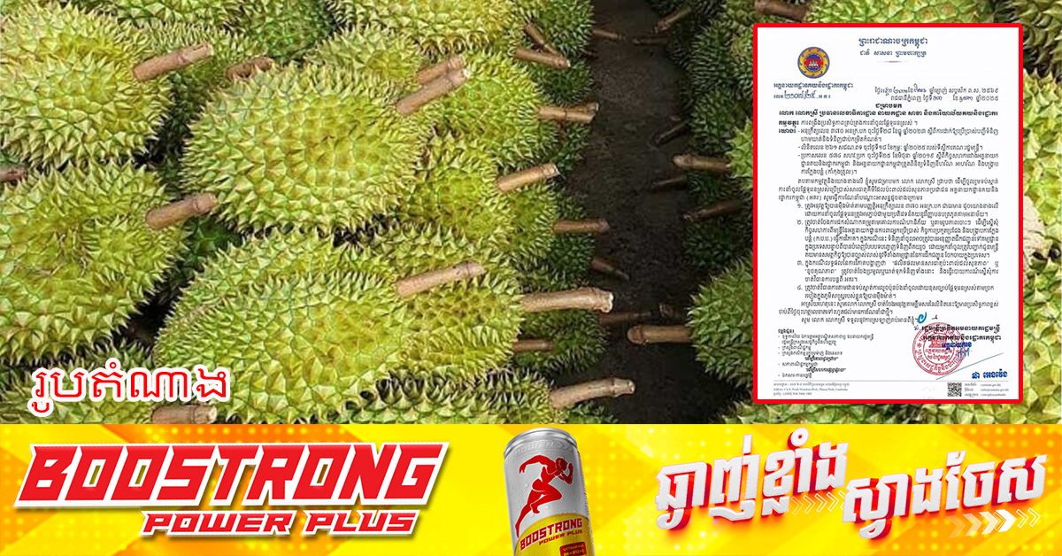 (ភ្នំពេញ)៖ អគ្គនាយកដ្ឋានគយនិង រដ្ឋាករកម្ពុជា បានណែនាំដល់មន្រ្តីនៅតាមព្រំដែន ឱ្យចូលរួមទប់ស្កាត់ការនាំចូលផ្លែទុរេនស្រស់ពីប្រទេសជិតខាងដែលប្រើប្រាស់សារធាតុគីមីដែលប៉ះពាល់ដល់សុខភាពប្រជាជន។ យោងតាមលិខិតរបស់ អគ្គនាយកដ្ឋានគយនិង រដ្ឋាករកម្ពុជា ចុះថ្ងៃទី១៣ ខែឧសភា ឆ្នាំ២០២៥ បានបញ្ជាក់ថា ដើម្បីចូលរួមទប់ស្កាត់ ការនាំចូលផ្លែទុរេនស្រស់ប្រើប្រាស់សារធាតុគីមីដែលប៉ះពាល់ដល់សុខភាពប្រជាជន អគ្គនាយកដ្ឋានគយនិង រដ្ឋាករកម្ពុជា (អគរ) សូមធ្វើការណែនាំបណ្តោះអាសន្នដូចខាងក្រោម៖ ១. ត្រូវអនុវត្តឱ្យបានម៉ឺងម៉ាត់តាមបញ្ញត្តិអនុក្រឹត្យលេខ ៣៧០ អនក្រ.បក ជាធរមាន ដូចយោងខាងលើ ដោយការនាំចូលផ្លែទុរេនត្រូវអមភ្ជាប់ជាមួយប្រតិវេទន៍គយនូវវិញ្ញាបនបត្រភូតគាមអនាម័យ។ ២. ត្រូវចាត់ចែងការដកសំណាកគម្រូតាមគោលការណ៍ហានិភ័យ ឬតាមរូបភាពចោះៗ ដើម្បីស្នើសុំ កិច្ចសហការពីមន្ត្រីនៃអគ្គនាយកដ្ឋានការពារអ្នកប្រើប្រាស់ កិច្ចការប្រកួតប្រជែង និងបង្ក្រាបការក្លែង បន្លំ (ក.ប.ប.) ធ្វើការវិភាគ។ ក្នុងករណីនេះ ទំនិញនាំចូលអាចត្រូវបានអនុញ្ញាតដឹកជញ្ជូនទៅគម្យដ្ឋាន