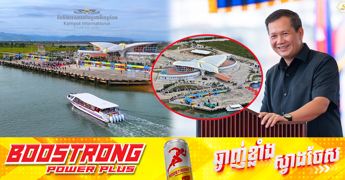 (កំពត)៖ នៅព្រឹកថ្ងៃចន្ទ ៩រោច ខែចេត្រ ឆ្នាំម្សាញ់ សប្តស័ក ព.ស.២៥៦៨ ត្រូវនឹងថ្ងៃទី២១ ខែមេសា ឆ្នាំ២០២៥នេះ សម្តេចមហាបវរធិបតី ហ៊ុន ម៉ាណែត នាយករដ្ឋមន្ត្រីកម្ពុជា អញ្ជើញជាអធិបតីដ៏ខ្ពង់ខ្ពស់សម្ពោធដាក់ឱ្យប្រើប្រាស់ជាផ្លូវការកំពង់ផែទេសចរណ៍អន្តរជាតិកំពត។ កំពង់ផែទេសចរណ៍អន្តរជាតិកំពត ស្ថិតនៅក្នុងភូមិជុំគ្រៀល ឃុំជុំគ្រៀល ស្រុកទឹកឈូ ខេត្តកំពត ត្រូវបានសាងសង់ឡើងនៅលើផ្ទៃដីទំហំ ៤,២៥ហិកតា ជាអំណោយរបស់អ្នកឧកញ៉ា វិញ ហួរ ជូនរាជរដ្ឋាភិបាលកម្ពុជា។ ហេដ្ឋារចនាសម្ព័ន្ធរបស់កំពង់ផែនេះ រួមមាន ផ្លូវបេតុងចូលកំពង់ផែប្រវែង ២,៤០គីឡូម៉ែត្រ ប្រព័ន្ធអគ្គិសនី ប្រព័ន្ធទឹកស្អាតសម្រាប់ផ្គត់ផ្គង់ការប្រើប្រាស់របស់ប្រជាជន និងកំពង់ផែ ប្រព័ន្ធចម្រោះទឹកកខ្វក់ របង