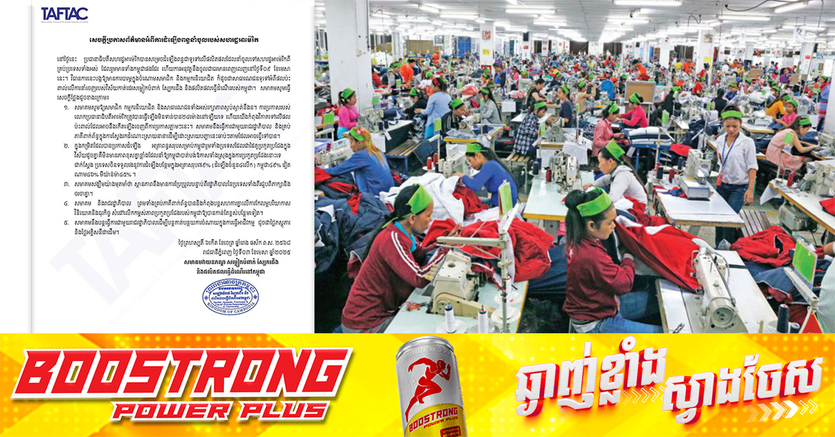 (ភ្នំពេញ)៖ តាមរយៈសេចក្តីប្រកាសព័ត៌មានរបស់ខ្លួន សមាគមវាយនភណ្ឌ សម្លៀកបំពាក់ ស្បែកជើង និងផលិតផលធ្វើដំណើរនៅកម្ពុជា (TAFTAC) បានអំពាវនាវដល់កម្មករនិយោជិត និងសាធារណជនទាំងអស់ រក្សាភាពស្ងប់ស្ងាត់ ចំពោះការប្រកាសដំឡើងពន្ធលើទំនិញ លើផលិតផលកម្ពុជា របស់អាមេរិក។ ជាមួយគ្នានេះ សមាគមបានអះអាងថាខ្លួននឹងបន្តធ្វើការវិភាគពីផលប៉ះពាល់នេះ និងធ្វើការជាមួយរាជរដ្ឋាភិបាល ស្ថាប័នពាក់ព័ន្ធដើម្បីរកដំណោះស្រាយនានា តាមដែលអាចធ្វើទៅបាន។ ក្នុងសេចក្តីប្រកាសព័ត៌មានេះ សមាគម TAFTAC មានសេចក្តីថ្លែងការណ៍ចំនួន៥ចំណុច ដូចខាងក្រោម៖ ១៖ សមាគមសូមឱ្យសមាជិក កម្មករនិយោជិត និងសាធារណជនទាំងអស់រក្សាភាពស្ងប់ស្ងាត់នឹងន។ ការប្រកាសរបស់ លោកប្រធានាធិបតីអាមេរិក ត្រូវបានធ្វើឡើងមិនទាន់បាន២៤ម៉ោងនៅឡើយទេ ហើយយើងកំពុងវិភាគទៅលើផល ប៉ះពាល់ដែលអាចនឹងកើតឡើងចេញពីការប្រកាសភ្លាមៗនេះ។ សមាគមនឹងធ្វើការជាមួយរាជរដ្ឋាភិបាល និងគ្រប់ ភាគីពាក់ព័ន្ធក្នុងការស្វែងរកដំណោះស្រាយនានា ដើម្បីដោះស្រាយបញ្ហានេះឆាប់ៗតាមដែលអាចធ្វើទៅបាន។