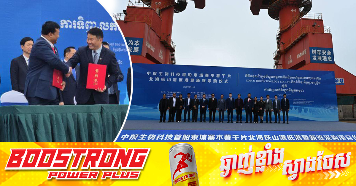 (ភ្នំពេញ)៖ ក្រុមហ៊ុន COFCO BIO-TECHNOLOGY CO.,LTD ដែលជាក្រុមហ៊ុនរដ្ឋរបស់ចិន បានចុះកិច្ចព្រមព្រៀងទិញ-លក់ដំឡូងមីស្ងួតកម្ពុជា និងបានសម្រេចនាំចេញដំឡូងមីស្ងួតពីកម្ពុជាជាលើកដំបូង ទៅកាន់ទីផ្សារចិន។ ពិធីទទួលដំឡូងមីស្ងួតពីកម្ពុជា ជាលើកដំបូងរបស់ក្រុមហ៊ុន COFCO BIO-TECHNOLOGY និងពិធីចុះកិច្ចព្រមព្រៀងស្តីពី ការទិញ-លក់ដំឡូងមីស្ងួតកម្ពុជា រវាងក្រុមហ៊ុន HANG HARVEST AGRICULTURE CO.,Ltd និងក្រុមហ៊ុន COFCO BIO-TECHNOLOGY CO.,Ltd ត្រូវបានរៀបចំឡើងនាថ្ងៃទីថ្ងៃទី១៤ ខែមីនា ឆ្នាំ២០២៥ នៅទីក្រុងប៉ីហៃ ខេត្តក្វាងស៊ី។ ពិធីទទួលដំឡូងមីស្ងួតពីកម្ពុជាលើកទី១ ចំនួន ៥,០០០ តោន និងពិធីចុះអនុស្សារណៈនៃការយោគយល់គ្នាចំនួន ២០០,០០០