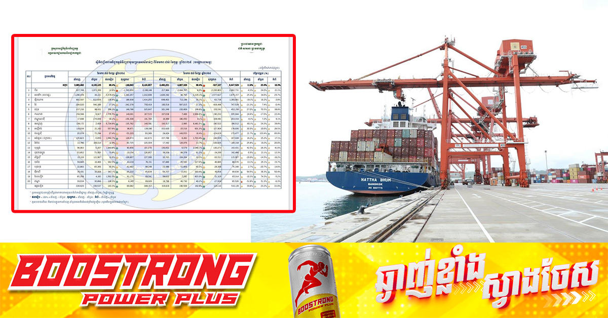 (ភ្នំពេញ)៖ រយៈពេល២ខែដំបូងនៃឆ្នាំ២០២៥ កម្ពុជាបានសម្រេចការនាំចេញទំនិញសំខាន់ៗ ក្នុងទំហំទឹកប្រាក់ប្រមាណជិត ៤.៥ពាន់លានដុល្លារ កើនឡើង១១.៩ភាគរយ។ នេះបើយោងតាមរបាយការណ៍ពីអគ្គនាយកដ្ឋានគយ និងរដ្ឋាករកម្ពុជា។ យោងតាមទិន្នន័យដដែលនេះបានឱ្យដឹងថា ក្នុងរយៈពេល២ខែដើមឆ្នាំនេះ កម្ពុជាសម្រេចបានទំហំពាណិជ្ជកម្មជាមួយទីផ្សារអន្តរជាតិប្រមាណ ៩.៤ពាន់លានដុល្លារ កើនឡើង១៦.៣% បើធៀបនឹងរយៈពេលដូចគ្នាកាលពីឆ្នាំ២០២៤។ ក្នុងនោះ កម្ពុជានាំចេញនាំចេញក្នុងតម្លៃ ៤ ៤៦០លានដុល្លារ កើនឡើង១១.៩% ខណៈការនាំចូលមកវិញមានចំនួន៤ ៩៨៧លានដុល្លារ កើនឡើង ២០.៦%។ ដៃគូពាណិជ្ជកម្មសំខាន់ៗរបស់កម្ពុជា រួមមាន ចិន, អាមេរិក, វៀតណាម, ជប៉ុន និងកាលណាដា ជាដើម។ ទំនិញសំខាន់ៗដែលកម្ពុជា បាននាំចេញច្រើនជាងគេ រួមមាន៖ សម្លៀកបំពាក់