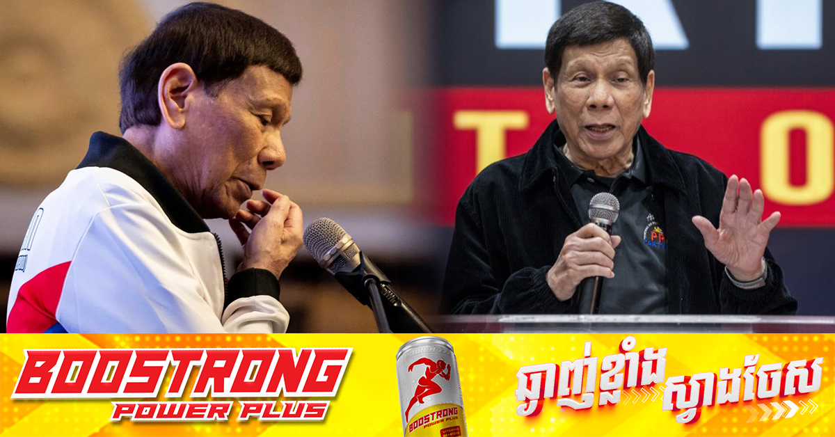 (ម៉ានីល)៖ វិមានប្រធានាធិបតីហ្វីលីពីន បានឱ្យដឹងនៅថ្ងៃអង្គារ ទី១១ ខែមីនានេះថាអតីតប្រធានាធិបតីហ្វីលីពីន លោក Rodrigo Duterte ត្រូវបានឃាត់ហើយពីបទឧក្រិដ្ឋកម្មប្រឆាំងនឹង មនុស្សជាតិ ក្រោយពេលរូបលោកបានធ្វើដំណើរមកដល់អាកាសយានដ្ឋានក្នុងទីក្រុងម៉ានីល វិញ។ នេះបើតាមការចេញផ្សាយដោយទីភ្នាក់ងារសារព័ត៌មាន AFP។ ការចាប់ខ្លួនលោក Rodrigo Duterte កើតមានឡើងតែមួយថ្ងៃប៉ុណ្ណោះ ក្រោយអតីតប្រធានាធិបតីរូបនេះកាលពីថ្ងៃចន្ទម្សិលមិញ បាននិយាយក្នុងទីក្រុងហុងកុងថា រូបលោកត្រៀមរួចជាស្រេច សម្រាប់លទ្ធភាពនៃការចាប់ខ្លួនរូបលោក ចំពេលមានសេចក្តីរាយការណ៍ថា តុលាការព្រហ្មទណ្ឌអន្តរជាតិ ICC គ្រោងនឹងចេញដីកា ជុំវិញសង្រ្គាមបង្រ្កាបគ្រឿងញៀនរបស់លោក ដែលបានសម្លាប់មនុស្សរាប់ពាន់នាក់។ លោក Duterte បានលើកឡើងដូចខាងលើ ក្នុងព្រឹត្តិការណ៍ជួបជុំជាមួយពលករហ្វីលីពីនរាប់ពាន់នាក់ នៅហុងកុង ដោយសង្ឃឹមថា នឹងអាចបង្កើនការគាំទ្រ