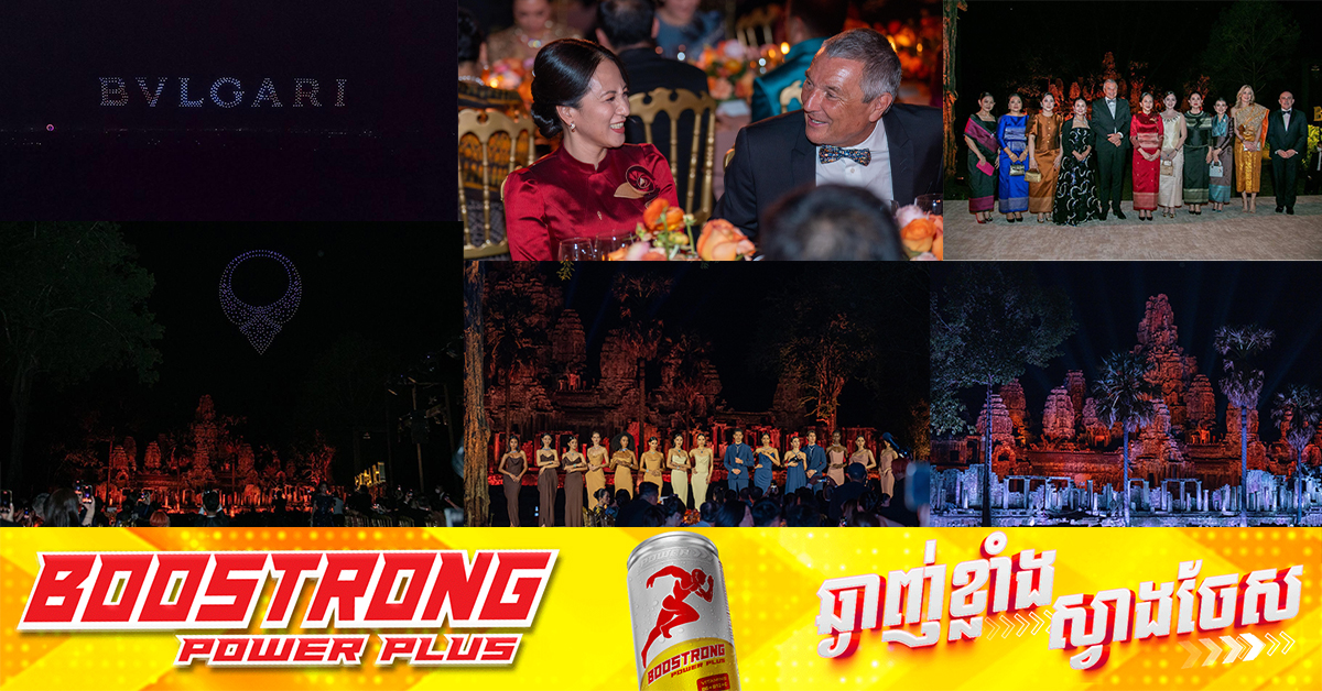 (សៀមរាប)៖ BVLGARI ដែលជាម៉ាកយីហោគ្រឿងអលង្ការយ៉ាងល្អប្រណីត និងល្អឯក ដ៏ល្បីលំដាប់ពិភពលោក នៅយប់ថ្ងៃទី២១ ខែកុម្ភៈ ឆ្នាំ២០២៥ បានរៀបចំកម្មវិធីរាត្រីសមោសរ (Gala Dinner) ឈ្មោះថា BVLGARI AETERNA ដើម្បីបង្ហាញម៉ូតរបស់ខ្លួន នៅប្រាសាទបាយ័ន ក្នុងខេត្តសៀមរាប។ កម្មវិធីដ៏អធិកអធមនេះ ត្រូវបានរៀបចំឡើងដោយមានការចូលរួមជាភ្ញៀវពិសេសដោយ លោកជំទាវ បណ្ឌិត ពេជ ចន្ទមុន្នី ហ៊ុន ម៉ាណែត។ ការបង្ហាញម៉ូតគ្រឿងអលង្ការ BVLGARI ក៏មានវត្តមាន តារាសម្តែងរបស់កម្ពុជា កញ្ញា ស៉ីន យូប៊ីន, តារាសម្តែងរបស់ថៃ កញ្ញា Mai
