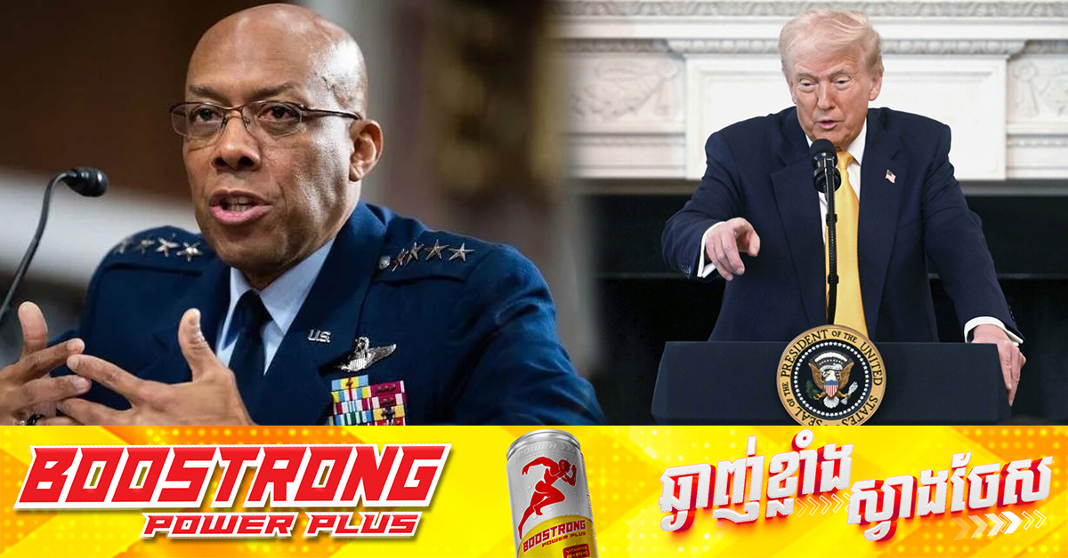 (វ៉ាស៉ីនតោន)៖ កាលពីថ្ងៃសុក្រ ទី២១ ខែកុម្ភៈ ប្រធានាធិបតីអាមេរិក លោក ដូណាល់ ត្រាំ បានប្រកាសថា រូបលោកសម្រេចដកតំណែង ប្រមុខកងទ័ពអាមេរិក លោក Charles Q Brown ដែលត្រូវបានតែងតាំងដោយ អតីតប្រធានាធិបតី លោក ចូ បៃដិន។ នេះបើតាមការចេញផ្សាយដោយ ទីភ្នាក់ងារព័ត៌មាន AFP។ ក្នុងសេចក្តីប្រកាសខាងលើ លោក ត្រាំ បានអរគុណលោក Brown សម្រាប់កិច្ចខិតខំបម្រើប្រទេសជាតិ រាប់សិបឆ្នាំរបស់លោក ហើយបានប្រកាសតែងតាំង លោក Dan Caine ជាប្រធានអគ្គសេនាធិការចម្រុះបន្ទាប់។