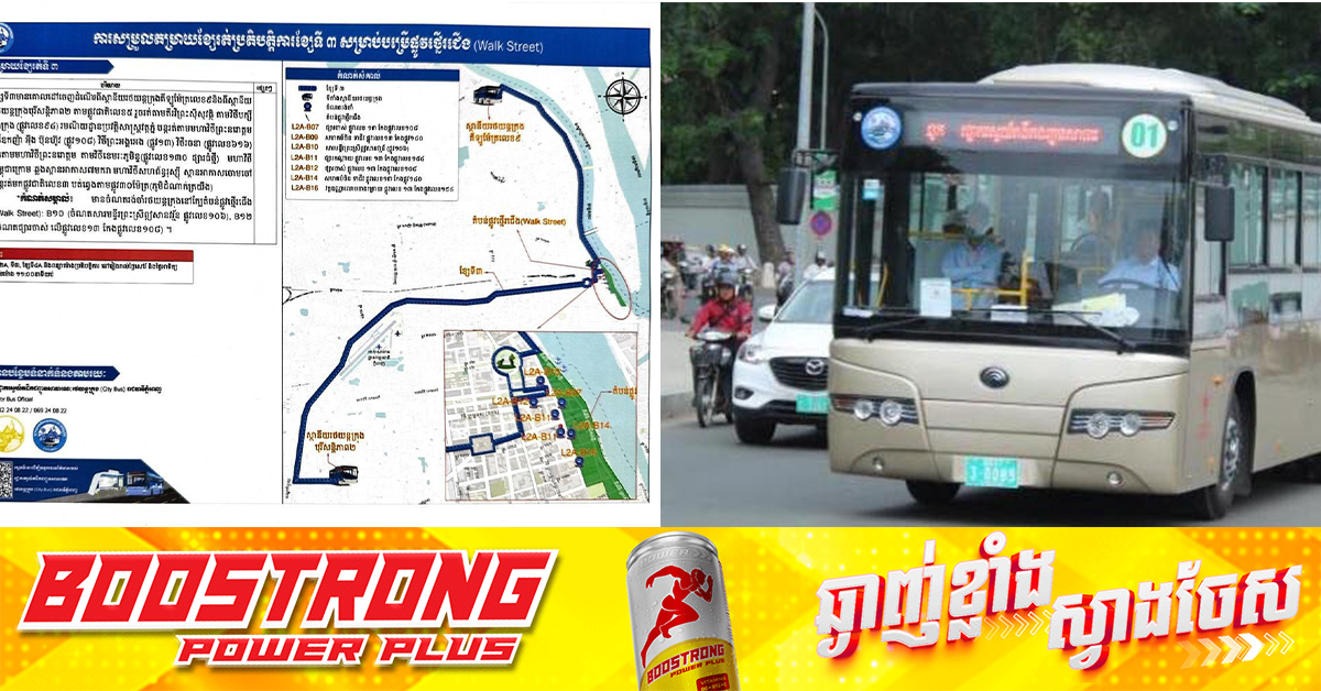 (ភ្នំពេញ)៖ ថ្មីៗនេះ រដ្ឋបាលរាជធានីភ្នំពេញ បានបើកឲ្យប្រើប្រាស់សាកល្បងនូវគម្រោងផ្លូវថ្មើរជើង (Walk Street) ចាប់ពីតីរវិថីព្រះស៊ីសុវត្ថិ ផ្លូវលេខ៩៤ រហូតដល់មុខព្រះបរមរាជវាំង នៅរៀងរាល់ថ្ងៃសៅរ៍ និងថ្ងៃអាទិត្យ នៃសប្តាហ៍ ចាប់ពីម៉ោង ៦៖០០នាទីល្ងាច រហូតដល់ម៉ោង១១៖០០នាទីយប់។ ជាការកត់សម្គាល់ បន្ទាប់ពីការបើកដំណើរការសាកល្បង គម្រោងផ្លូវថ្មើរជើង (Walk Street) នេះ ទទួលបានការគាំទ្រ និងចូលរួមពីសំណាក់ភ្ញៀវជាតិ និងអន្តរជាតិ មកដើរលេងកម្សាន្តជាច្រើន ពោលគឺបានកើនឡើងជាបន្តបន្ទាប់។ ក្នុងន័យនេះ រដ្ឋបាលរាជធានីភ្នំពេញ សម្រេចកែសម្រួលតម្រាយខ្សែរត់ និងបន្ថែមម៉ោងប្រតិបត្តិការរបស់រថយន្តក្រុងសាធារណៈ ខ្សែទី២A, ខ្សែទី៣ និងខ្សែទី៤A ដើម្បីគាំទ្រដល់គម្រោងផ្លូវថ្មើរជើង (Walk