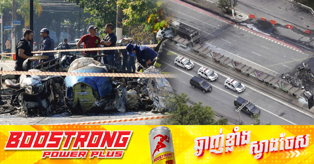 (សៅប៉ូឡូ)៖ មនុស្សពីរនាក់បានស្លាប់ និងពីរនាក់ទៀតរងរបួស នៅពេលដែលយន្តហោះ ធុនតូចមួយគ្រឿង បានធ្លាក់បុករថយន្តនៅលើផ្លូវ Marques de Sao Vicente Avenue ដ៏មមាញឹកនៅក្នុងទីក្រុងសៅប៉ូឡូ នៅថ្ងៃសុក្រនេះ។ នេះបើយោងតាមការចុះផ្សាយដោយទីភ្នាក់ងារសារព័ត៌មាន Reuters។ ភ្លាមៗនេះមូលហេតុដែលនាំឱ្យកើតមានឧបទ្ទិវហេតុនេះ នៅមិនទាន់ឱ្យដឹងនៅឡើយទេ៕