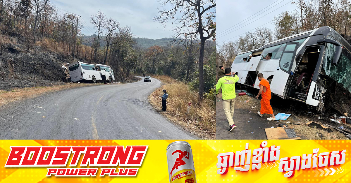 (មណ្ឌលគិរី)៖ នៅព្រឹកថ្ងៃទី០៧ ខែកុម្ភៈ ឆ្នាំ២០២៥ មានករណីរថយន្ដក្រុងរេចង្កូតធ្លាក់ផ្លូវដោយខ្លួនឯង ស្លាកលេខ ភ្នំពេញ 3D-6584 ពណ៌ស នៅចន្លោះគីឡូម៉ែត្រលេខ ៤២-៤៣ ស្ថិតនៅភូមិពូក្រូច ឃុំស្រែអំពូម ស្រុកពេជ្រាដា ខេត្តមណ្ឌលគិរី។ ថ្លែងប្រាប់បណ្ដាញព័ត៌មាន Fresh News លោកឧត្តមសេនីយ៍ទោ ឡោ សុខា ស្នងការនគរបាលខេត្តមណ្ឌលគិរី បានបញ្ជាក់ថា ក្នុងករណីនេះ មានអ្នកធ្វើដំណើរសរុប៤៦នាក់ (មានសង្ឃ០៣អង្គ) របួសធ្ងន់០៣នាក់ (ស្រី០២ ប្រុស០១) និងរបួសស្រាល ១១នាក់ (ស្រី០៤ ប្រុស០៧)។ លោកឧត្តមសេនីយ៍ទោ