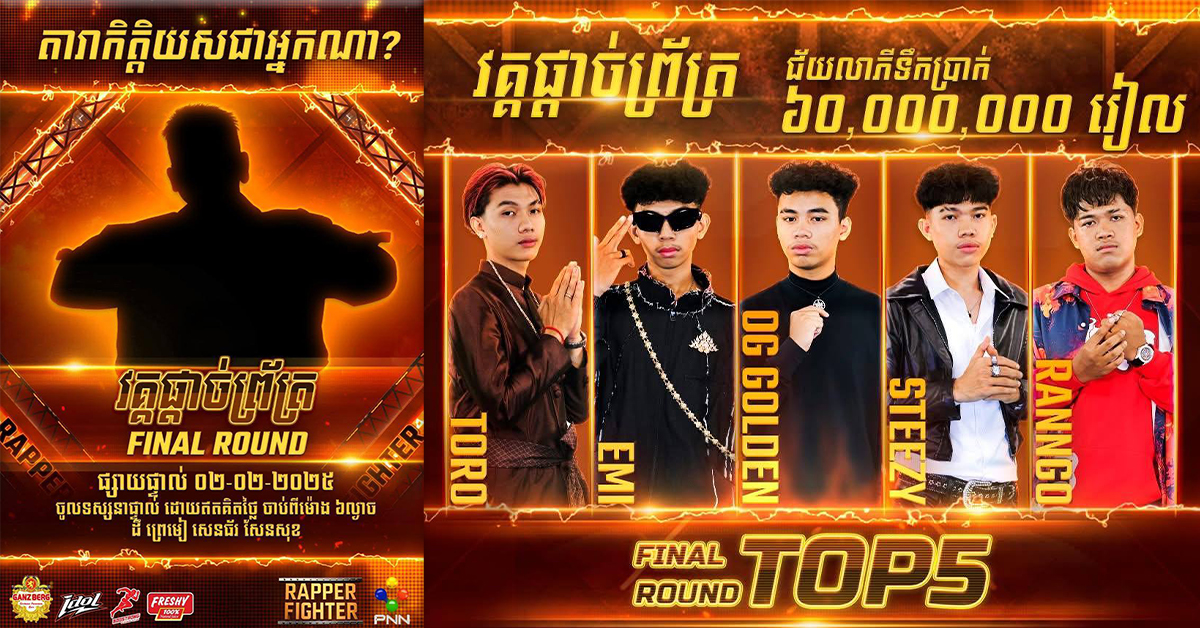 ភ្នំពេញ៖ GANZBERG គឺក្រុមហ៊ុនឈានមុខគេនៅក្នុងស្រុកខ្មែរក្នុងការចូលរួមចំណែកយ៉ាងសំខាន់ លើកស្ទួយវិ័ស័យប្រដាល់គុនខ្មែរ បាល់ទាត់ បាល់ទះ ជាពិសេសវិស័យសិល្បៈ ដែលទទួលបានការគាំទ្រយ៉ាងខ្លាំងពីសំណាក់ប្រជាពលរដ្ឋទាំងក្នុងនិងក្រៅប្រទេស។ ក្នុងនោះផងដែរ GANZBERG បានបង្កើតកម្មវិធីមួយដែលកំពុងមានភាពល្បីល្បាញយ៉ាងពីស្រទាប់យុវវ័យក្នុងបណ្តាញសង្គម នោះកម្មវិធី RapperFighter។ ឥលូវនេះ GANZBERG បានរកឃើញបេក្ខជន Rapper ៥រូបបានឡើងទៅកាន់វគ្គផ្តាច់ព្រ័ត្រក្នុងកម្មវិធី Rapper Fighter Final Round ដែលរៀបចំនៅថ្ងៃទី2 ខែកុម្ភៈ ខាងមុខនេះ នៅ ដឹព្រេមៀ សែនសុខ និងធ្វើការផ្សាយផ្ទាល់តាមរយៈស្ថានីយ៍ទូរទស្សន៍ PNN និង Pageផ្លូវការ GANZBERG។ គួរបញ្ជាក់ផងដែរថា