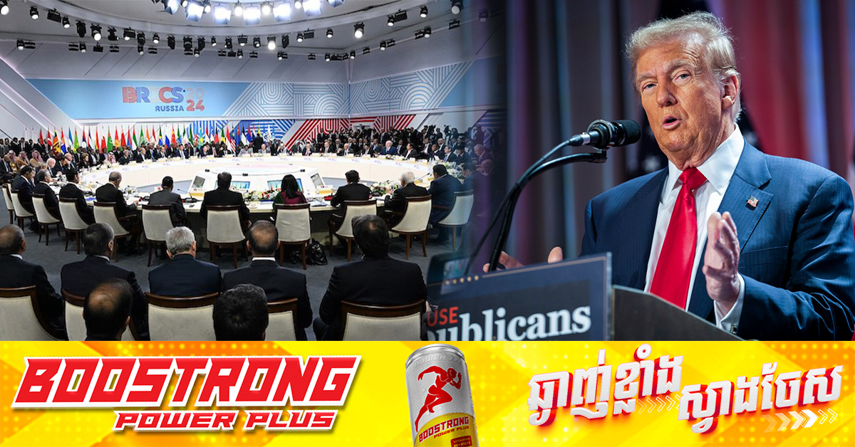 (វ៉ាស៉ីនតោន)៖ ប្រធានាធិបតីអាមេរិក លោក ដូណាល់ ត្រាំ កាលពីថ្ងៃព្រហស្បតិ៍សប្តាហ៍នេះ បានព្រមានដល់សមាជិកនៃក្រុមប្រទេស BRICS ជុំវិញបំណងរបស់ពួកគេក្នុងការប្រេីប្រាស់រូបិយប័ណ្ណផ្សេងជំនួសប្រាក់ដុល្លារអាមេរិក ដោយគំរាមជាថ្មីថានឹងដាក់ពន្ធ ១០០ភាគរយ ដូចដែលលោកធ្លាប់និយាយក្រោយឈ្នះការបោះឆ្នោត។ នេះបេីយោងតាមការចេញផ្សាយដោយទីភ្នាក់ងារសារព័ត៌មាន Reuters នៅថ្ងៃសុក្រ ទី៣១ ខែមករា ឆ្នាំ ២០២៥។ លោក ត្រាំ បាននិយាយលើបណ្តាញសង្គម Truth Social នៅក្នុងសេចក្តីថ្លែងការណ៍មួយដែលស្ទើរតែដូចគ្នានឹងសារដែលលោកធ្លាប់បង្ហោះកាលពីថ្ងៃទី៣០ ខែវិច្ឆិកា ថា «យើងនឹងទាមទារការប្តេជ្ញាចិត្តពីប្រទេស ដែលហាក់ដូចជាមានទំនាក់ទនងមិនសូវល្អជាមួយអាមេរិកទាំងនេះថា ពួកគេនឹងមិនបង្កើតរូបិយប័ណ្ណ BRICS ថ្មី ឬយករូបិយប័ណ្ណផ្សេងមកជំនួសប្រាក់ដុល្លារអាមេរិក បេីពុំនោះទេពួកគេអាចប្រឈមមុខនឹងពន្ធ ១០០ភាគរយ»។