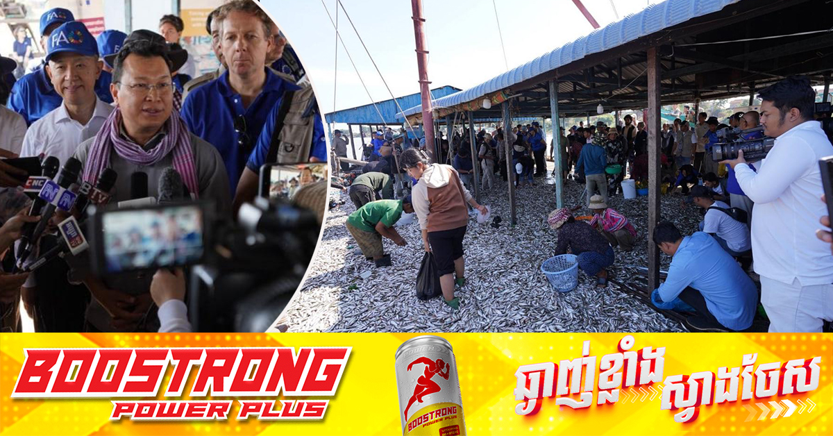 (កណ្ដាល)៖ លោក ឌិត ទីណា រដ្ឋមន្ត្រីក្រសួងកសិកម្ម រុក្ខាប្រមាញ់ និងនេសាទ បានបញ្ជាក់ឱ្យដឹងនៅថ្ងៃទី៩ ខែមករា ឆ្នាំ២០២៥នេះថា ផលនេសាទត្រីប្រហុកនៅឆ្នាំនេះ កើនឡើងប្រមាណ ១០%បើធៀបនឹងឆ្នាំមុន ខណៈលោកអំពាវនាវដល់ប្រជានេសាទបន្តអនុវត្តច្បាប់ជលផល សំដៅធានានិរន្តភាពត្រីក្នុងធម្មជាតិ។ ការបញ្ជាក់នេះធ្វើឡើងនាឱកាសដែលលោករដ្ឋមន្ត្រីរួមដំណើររបស់ លោក Wang Wenbin ឯកអគ្គរដ្ឋទូតចិន, ក្រុមសហភាពអឺរ៉ុប និងអង្គការស្បៀងនិងកសិកម្មនៃសហប្រជាជាតិ (FAO) ដែលបានចុះពិនិត្យការប្រមូលផលត្រីប្រហុក នៅដាយត្រីលេខ១៥ ស្ថិតក្នុងភូមិតាពៅ ឃុំកោះចិន ស្រុកពញាឮ ខេត្តកណ្តាល។ ក្នុងដំណើរចុះទស្សនកិច្ចនេះ លោក ឌិត ទីណា បានសម្តែងនូវការសាទរជាខ្លាំងចំពោះផលត្រីក្នុងឆ្នាំនេះ ដែលអនុញ្ញាតឲ្យប្រជាពលរដ្ឋអាចទិញត្រីធ្វើប្រហុកបានកាន់តែច្រើន