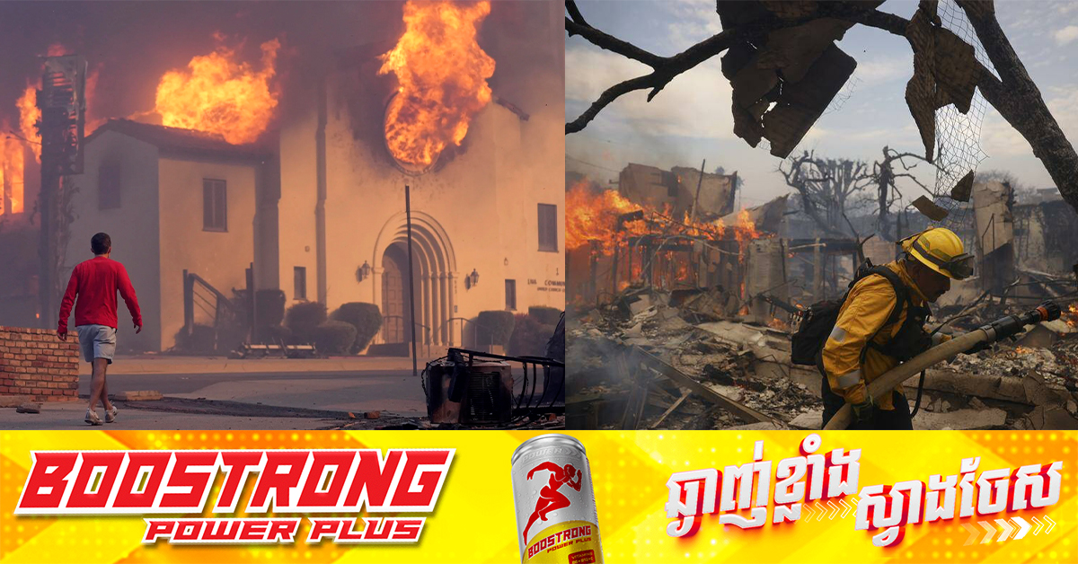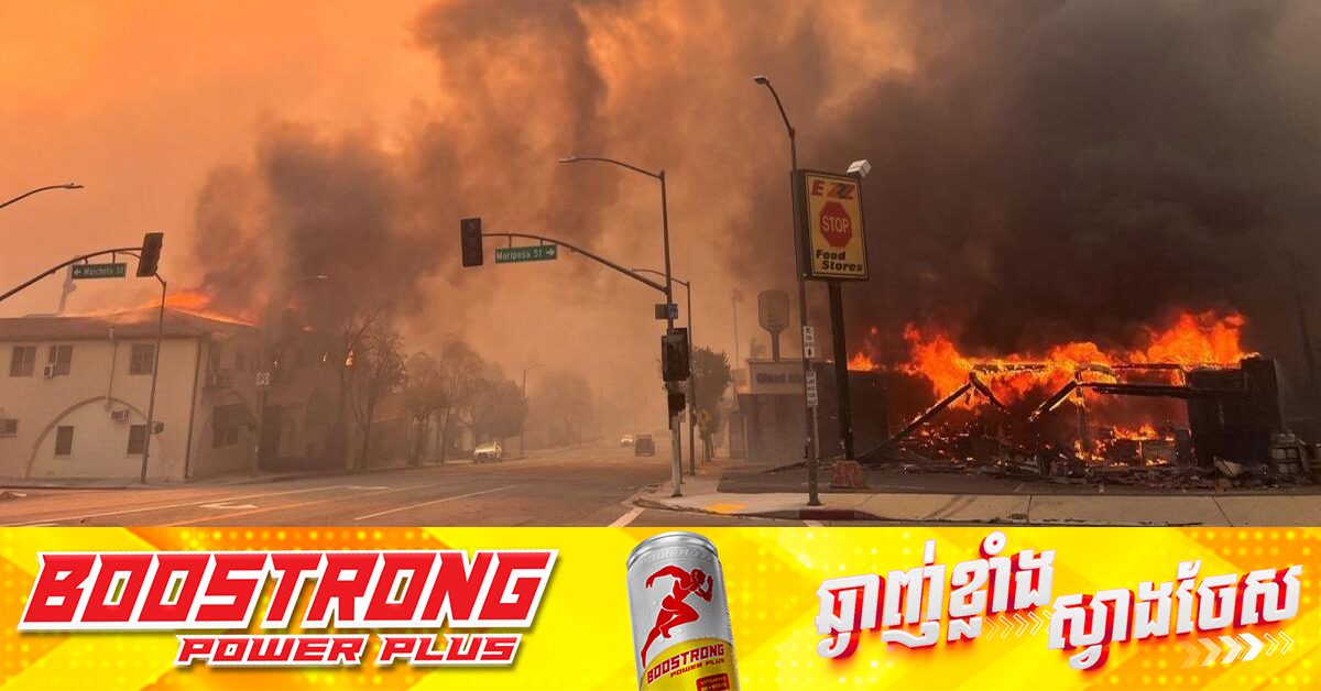 (វ៉ាស៊ីនតោន)៖ មនុស្សជាង ៣០,០០០ នាក់ រួមទាំងតារាល្បីៗជាច្រើន បានភៀសខ្លួនចេញពីផ្ទះសម្បែង ខណៈដែលភ្លើងឆេះព្រៃបានឆាបឆេះតំបន់ឆ្នេរដ៏ធំ នៃទីក្រុង Los Angeles ពេញមួយយប់។ ភ្លើងបានបំផ្លាញផ្ទះសម្បែងជាច្រើន និងឆេះរាលដាលតាមជម្រាលភ្នំ បង្កឱ្យមានការកកស្ទះចរាចរណ៍ខ្លាំង ខណៈអ្នកស្រុកនាំគ្នាជម្លៀសខ្លួន។ ក្រុមអ្នកព្យាករណ៍អាកាសធាតុបានព្រមានថា ស្ថានភាពអាចនឹងកាន់តែអាក្រក់ ពេញមួយថ្ងៃពុធ ដោយសារខ្យល់ព្យុះ និងលក្ខខណ្ឌស្ងួតហួតហែង កំពុងបង្កើនការលំបាកនៅក្នុងសង្កាត់ប៉ាស៊ីហ្វិក Palisades និងយ៉ាងហោចណាស់ពីរតំបន់ផ្សេងទៀត ក្នុងទីក្រុង Los Angeles។ អភិបាលរដ្ឋកាលីហ្វ័រញ៉ា លោក Gavin Newsom បានប្រកាសដាក់រដ្ឋក្នុងភាពអាសន្នកាលពីថ្ងៃអង្គារ។ តំបន់ Pacific Palisades ដែលជាជម្រករបស់តារាល្បីៗជាច្រើន