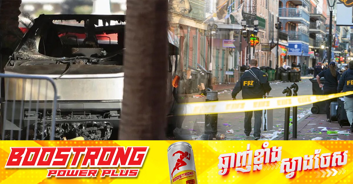 (វ៉ាស៉ីនតោ)៖ ក្រុមមន្រ្តីនិយាយថា ប៉ូលិស FBI កំពុងស៉ើបអង្កេតថា តើករណីផ្ទុះឆេះរថយន្ត Tesla Cybertruck នៅខាងក្រៅសណ្ឋាគាររបស់ លោក ត្រាំ ក្នុងទីក្រុង Las Vegas និងករណីរថយន្តបើកបំបុកហ្វូងមនុស្ស នៅឯទីក្រុង New Orleans សហរដ្ឋអាមេរិក ចំថ្ងៃឆ្លងឆ្នាំសកល មានពាក់ព័ន្ធគ្នាឬអត់។ នេះបើយោងតាមការចេញផ្សាយដោយទីភ្នាក់ងារសារ Reuters នៅថ្ងៃសុក្រ ទី៣ ខែមករា ឆ្នាំ ២០២៥។ ធុងសាំង និងកាំជ្រួចដើមធំៗត្រូវបានដាក់ក្នុងរថយន្ត Cybertruck ដែលឆាបឆេះភ្លាមៗ បន្ទាប់ពីអ្នកបើកបរនៃរថយន្តនេះ បើករថយន្តភីកអាប់មួយគ្រឿងដោយចេតនា ចូលទៅក្នុងហ្វូងមនុស្សដែលកំពុងអបអរឆ្នាំថ្មី