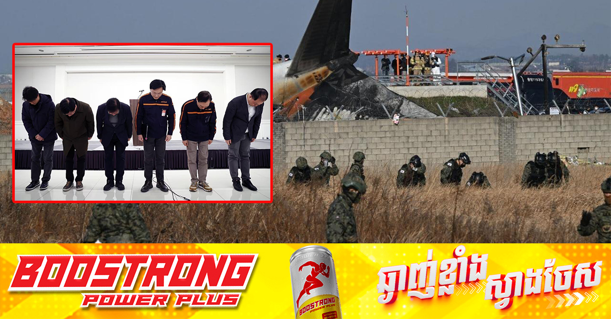 (សេអ៊ូល)៖ នៅថ្ងៃអាទិត្យនេះ ហេតុការណ៍គ្រោះថ្នាក់យន្តហោះដ៏រន្ធត់មួយ បានកើតមានឡើងនៅព្រលានយន្តហោះមួយកន្លែង ក្នុងប្រទេសកូរ៉េខាងត្បូង ដែលបានឆក់យកជីវិតមនុស្សជិត១៨០នាក់។ ខាងក្រោម គឺជាព័ត៌មានលម្អិត ជុំវិញហេតុការណ៍នោះ ដែលជាករណីគ្រោះថ្នាក់យន្តហោះដ៏អាក្រក់បំផុត ក្នុងឆ្នាំ២០២៤នេះ៖ * ពេលវេលា ទីតាំង និងហេតុការណ៍គ្រោះថ្នាក់ យន្តហោះរងគ្រោះ បានជួបគ្រោះថ្នាក់ នៅអាកាសយានដ្ឋានអន្តរជាតិ Muan ស្ថិតនៅភាគនិរតីនៃប្រទេសកូរ៉េខាងត្បូង កាលពីវេលាម៉ោងខ្ទង់៩ព្រឹក (ម៉ោងក្នុងតំបន់) ថ្ងៃអាទិត្យ ទី២៩ ខែធ្នូ ក្នុងគោលដៅធ្វើដំណើរហោះចេញពី ទីក្រុងបាងកកនៃប្រទេសថៃ ឆ្ពោះមកកាន់ស្រុក Muan នៃខេត្ត South Jeolla ប្រទេសកូរ៉េខាងត្បូង។ បើតាមឃ្លីបវីដេអូបង្ហាញពីហេតុការណ៍ផ្ទាល់ គេមើលឃើញ