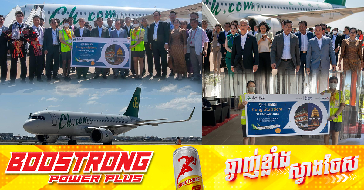 (ភ្នំពេញ)៖ កម្ពុជា-ចិន បានចាប់ផ្ដើមបើកជើងហោះហើរឡើងវិញ ពីទីក្រុងស៊ីអាន មកកាន់ទីក្រុងភ្នំពេញ ដោយក្រុមហ៊ុនអាកាសចរណ៍ Spring Airlines នៅថ្ងៃទី២៩ ខែធ្នូ ឆ្នាំ២០២៤នេះ នៅអាកាសយានដ្ឋានអន្ដរជាតិភ្នំពេញ។ ក្នុងពិធីទទួលស្វាគមន៍ ជើងហោះហើរត្រង់ទី១ នេះ ដោយមានការចូលរួម ពីលោកបណ្ឌិត ម៉ៅ ហាវណ្ណាល់ រដ្ឋមន្ត្រីទទួលបន្ទុករដ្ឋលេខាធិការដ្ឋានអាកាសចរណ៍ស៊ីវិល, លោក ហួត ហាក់ រដ្ឋមន្រ្តីក្រសួងទេសចរណ៍ និងលោក Wang Wenbin ឯកអគ្គរដ្ឋទូតចិនប្រចាំកម្ពុជា។ លោកបណ្ឌិត ម៉ៅ ហាវណ្ណាល់ បានសម្លឹងឃើញថា ទំនាក់ទំនង កម្ពុជា-ចិន ជាពិសេសភ្ញៀវទេសចរចិន