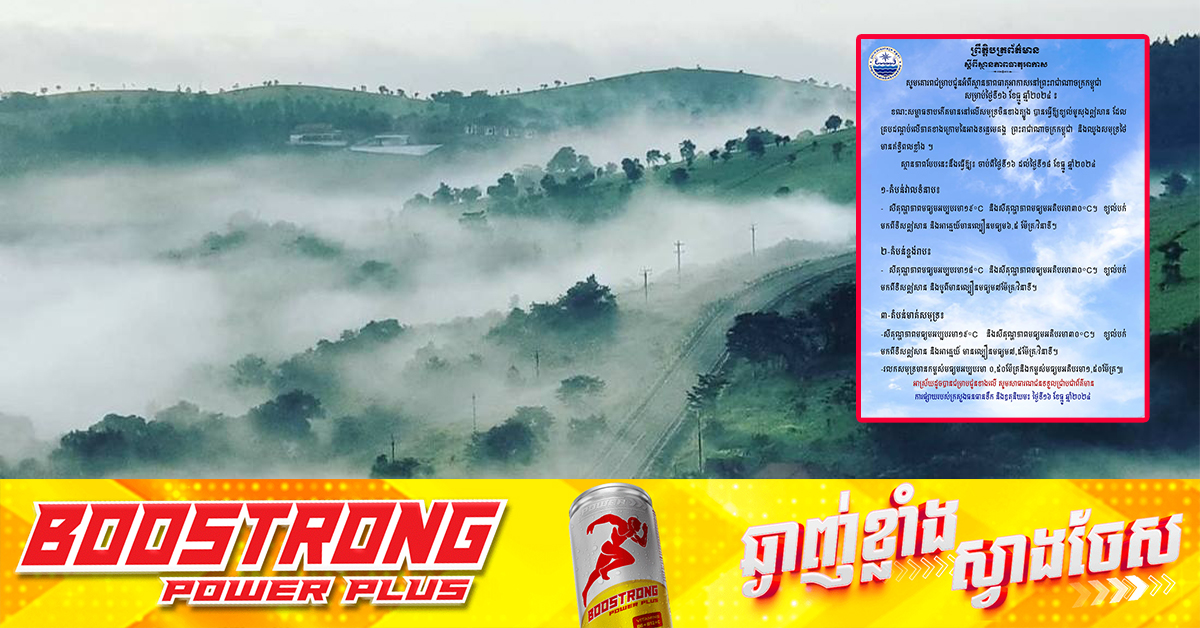 (ភ្នំពេញ)៖ ក្រសួងធនធានទឹក និងឧតុនិយម បានចេញសេចក្តីជូនដំណឹង អំពីស្ថានភាពធាតុអាកាសនៅកម្ពុជា សម្រាប់ថ្ងៃទី១៦ ខែធ្នូ ឆ្នាំ២០២៤។ ខាងក្រោមនេះ ជាសេចក្តីជូនដំណឹងរបស់ក្រសួងធនធានទឹក៖ ផ្ដល់សិទ្ធិដោយ៖ Fresh News