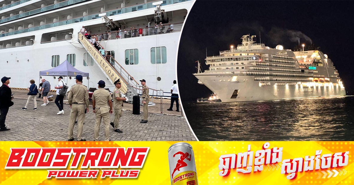 (ព្រះសីហនុ)៖ នាវាទេសចរណ៍ខ្នាតធំ ១គ្រឿង បានចូលចតកំពង់ផែស្វយ័តក្រុងព្រះសីហនុ នៅថ្ងៃទី១៣ ខែធ្នូ ឆ្នាំ២០២៤ ផ្ទុកភ្ញៀវទេសចរចម្រុះជាតិសាសន៍ និងនាវិកចំនួន ៩៤៤នាក់ មកលេងកម្សាន្តប្រទេសកម្ពុជា រយៈពេល១ថ្ងៃ។ របាយការណ៍បានឱ្យដឹងថា នាវានេះ មានឈ្មោះ Sea Bourn Encore សញ្ជាតិ Bahamas ដែលមានចំនួននាវិកចម្រុះជាតិសាសន៍ (៤៩សញ្ជាតិ) ចំនួន៤០៤នាក់ (ស្រី១០៦) មានផ្ទុកភ្ញៀវទេសចរចំនួន ៥៤០នាក់ ស្រី២៦៧ ក្នុងនោះមានជាតិសាសន៍សរុបចំនួន ៣៤សញ្ជាតិ។ របាយការណ៍ដដែលបានបន្តថា នាវាទេសចរណ៍មួយនេះនឹងចាកចេញពីខេត្តព្រះសីហនុ នាវេលាម៉ោង០៨យប់ ថ្ងៃទី១៣ ខែធ្នូនេះដដែល ដើម្បីបន្តឆ្ពោះទៅកម្សាន្តនៅប្រទេសវៀតណាម។