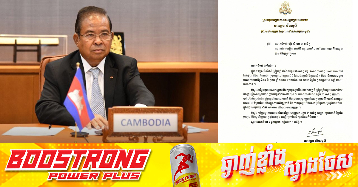 (ភ្នំពេញ)៖ ព្រះករុណាព្រះបាទសម្តេចព្រះបរមនាថ នរោត្តម សីហមុនី ព្រះមហាក្សត្រ នៃព្រះរាជាណាចក្រកម្ពុជា បានសព្វព្រះរាជហឬទ័យ ព្រះរាជទាន ព្រះរាជសារលិខិតរំលែកទុក្ខជូន លោកជំទាវ ខៀវ ស៊ីណា ជាចាន់តូ និងលោកជំទាវ ជា សិរី ចំពោះមរណភាពរបស់ឯកឧត្តម ជា ចាន់តូ។ ឯកឧត្តម ជា ចាន់តូ តំណាងរាស្រ្តមណ្ឌលខេត្តកំពង់ធំ និងជាទេសាភិបាលកិត្តិយសធនាគារជាតិនៃកម្ពុជា ទទួលមរណភាព នៅថ្ងៃសុក្រ ៨រោច ខែអស្សុជ ឆ្នាំរោង ឆស័ក ព.ស.២៥៦៨ ត្រូវនឹងថ្ងៃទី២៥ ខែតុលា ឆ្នាំ២០២៤ វេលាម៉ោង