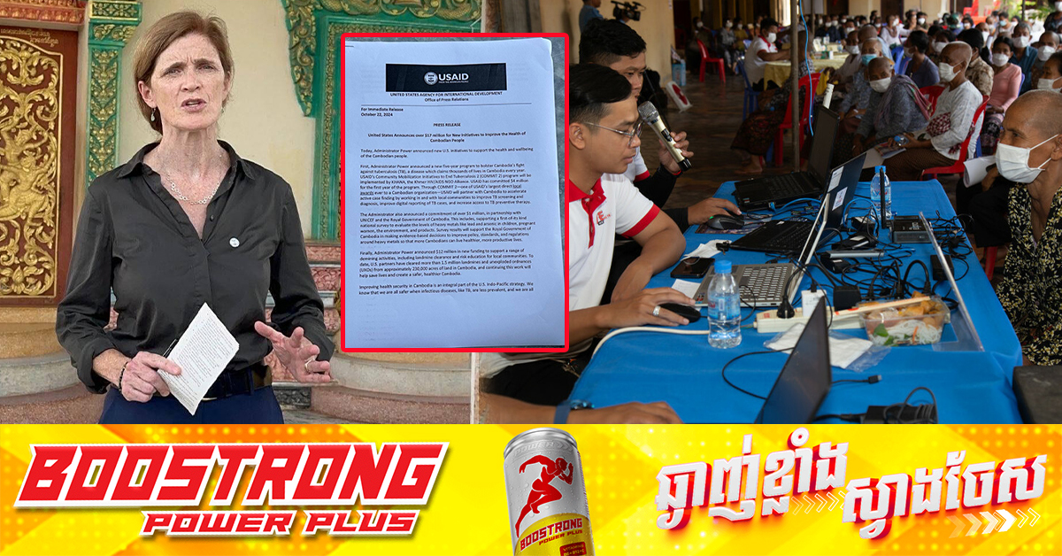 (ភ្នំពេញ)៖ សហរដ្ឋអាមេរិកបានប្រកាសផ្តល់មូលនិធិសរុបជាង ១៧លានដុល្លារ សម្រាប់គម្រោងថ្មីៗមួយចំនួនដែលមានរយៈពេល៥ឆ្នាំ សម្រាប់អនុវត្តកិច្ចការលើកកម្ពស់សុខុមាលភាពរបស់ប្រជាជន និងសកម្មភាពដោះមីននៅប្រទេសកម្ពុជា។ ការប្រកាសនេះធ្វើឡើងតាមរយៈសន្និសីទសារព័ត៌មានរបស់អ្នកស្រី Power នាយិកាទីភ្នាក់ងារផ្តល់ជំនួយរបស់សហរដ្ឋអាមេរិក (USAID) ដែលធ្វើឡើងនាថ្ងៃទី២២ ខែតុលា នៅវត្តស្វាយធំ ខេត្តសៀមរាប។ ដំបូង អ្នកស្រី Power នាយិកាទីភ្នាក់ងារ USAID បានប្រកាសពីគម្រោងរយៈពេល៥ឆ្នាំ ដើម្បីពង្រឹងការប្រយុទ្ធប្រឆាំងនឹងជំងឺរបេងនៅក្នុងប្រទេសកម្ពុជា។ ជំងឺនេះបានសម្លាប់មនុស្សរាប់ពាន់នាក់នៅកម្ពុជាជារៀងរាល់ឆ្នាំ។ គម្រោងរបស់ទីភ្នាក់ងារផ្តល់ជំនួយ USAID ដែលមានឈ្មោះថា USAID’s Community Mobilization Initiatives to End Tuberculosis 2 (COMMIT 2)