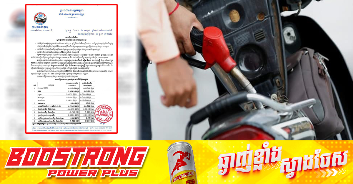 (ភ្នំពេញ)៖ ក្រសួងពាណិជ្ជកម្ម នៅថ្ងៃទី២១ ខែតុលា ឆ្នាំ២០២៤នេះ បានចេញសេចក្តីជូនដំណឹង ប្រកាសពីតម្លៃលក់រាយប្រេងឥន្ធនៈ នៅតាមស្ថានីយនានាដោយចាប់ពីថ្ងៃនេះ ដល់ថ្ងៃទី៣១ ខែតុលា ឆ្នាំ២០២៤ ត្រូវលក់សាំងធម្មតាតម្លៃ ៣,៩៥០រៀល និងម៉ាស៊ូតត្រូវលក់ ៣,៨០០រៀល ក្នុង១លីត្រ៕ ផ្ដល់សិទ្ធិដោយ៖ Fresh News