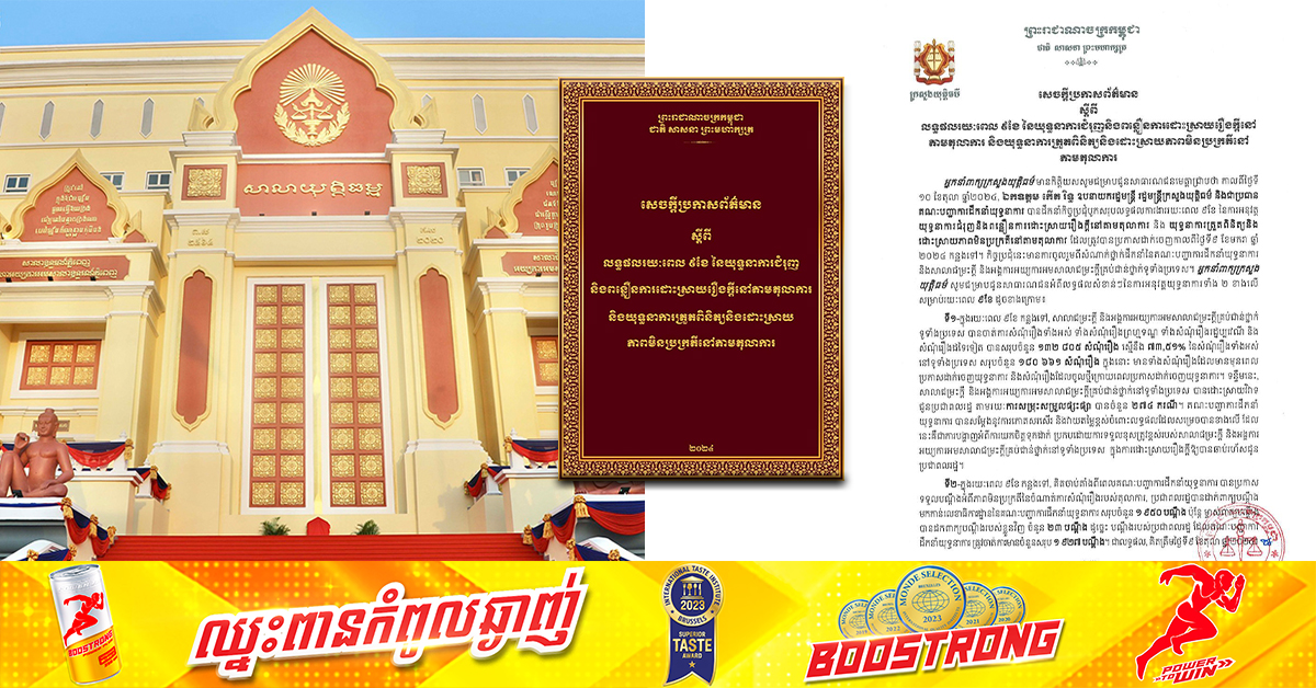 (ភ្នំពេញ)៖ ក្រសួងយុត្តិធម៌ បានចេញសេចក្ដីប្រកាសព័ត៌មានស្តីពីលទ្ធផលរយៈពេល៩ខៃ ឆ្នាំ២០២៤នេះ នៃយុទ្ធនាការជំរុញ និងពន្លឿនការដោះស្រាយរឿងក្តីនៅតាមតុលាការ និងយុទ្ធនាការត្រួតពិនិត្យ និងដោះស្រាយភាពមិនប្រក្រតីនៅតាមតុលាការ។ នេះបើតាមសេចក្តីប្រកាសព័ត៌មានរបស់អ្នកនាំពាក្យក្រសួងយុត្តិធម៌ ដែលបណ្តាញព័ត៌មាន Fresh News ទទួលបាននៅថ្ងៃទី១១ ខែតុលា ឆ្នាំ២០២៤នេះ។ អ្នកនាំពាក្យក្រសួងយុត្តិធម៌ បានឱ្យដឹងថា កាលពីថ្ងៃទី១០ ខែតុលា ឆ្នាំ២០២៤, លោក កើត រិទ្ធ ឧបនាយករដ្ឋមន្ត្រី រដ្ឋមន្ត្រីក្រសួងយុត្តិធម៌ និងជាប្រធានគណៈបញ្ជាការដឹកនាំយុទ្ធនាការ បានដឹកនាំកិច្ចប្រជុំបូក សរុបលទ្ធផលការងាររយៈពេល៩ខែ នៃការអនុវត្តយុទ្ធនាការជំរុញ និងពន្លឿនការដោះស្រាយរឿងក្តីនៅតាមតុលាការ និងយុទ្ធនាការត្រួតពិនិត្យ និងដោះស្រាយភាពមិនប្រក្រតីនៅតាមតុលាការ ដែលត្រូវបានប្រកាសដាក់ចេញកាលពីថ្ងៃទី៩ ខែមករា ឆ្នាំ២០២៤កន្លងទៅ។