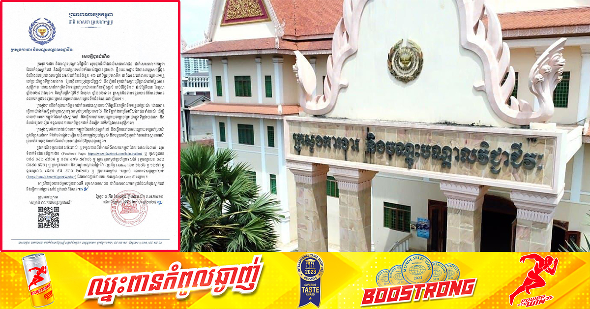 (ភ្នំពេញ)៖ ក្រសួងការងារ និងបណ្តុះបណ្តាលវិជ្ជាជីវៈ នៅរសៀលថ្ងៃទី០៩ ខែតុលា ឆ្នាំ២០២៤ បានចេញសេចក្ដីជូនដំណឹងដល់សាធារណជន ជាពិសេសពលករកម្ពុជា ដែលកំពុងស្នាក់នៅ និងធ្វើការនៅប្រទេសថៃទាំងអស់ ឱ្យបង្កើនការប្រុងប្រយ័ត្នខ្ពស់ និងរៀបចំទុកដាក់សម្ភារប្រើប្រាស់នៅកន្លែងមាន សុវត្ថិភាព ដោយសារតែកម្រិតទឹកទន្លេចៅប្រះយ៉ាអាចកើនឡើងខ្ពស់ ចាប់ពីថ្ងៃទី១៣ ដល់ថ្ងៃទី២៣ ខែតុលា ឆ្នាំ២០២៤ខាងមុខ៕ ខាងក្រោមនេះជាសេចក្តីជូនដំណឹងរបស់ក្រសួងការងារ និងបណ្តុះបណ្តាលវិជ្ជាជីវៈ៖ ផ្ដល់សិទ្ធិដោយ៖ Fresh News