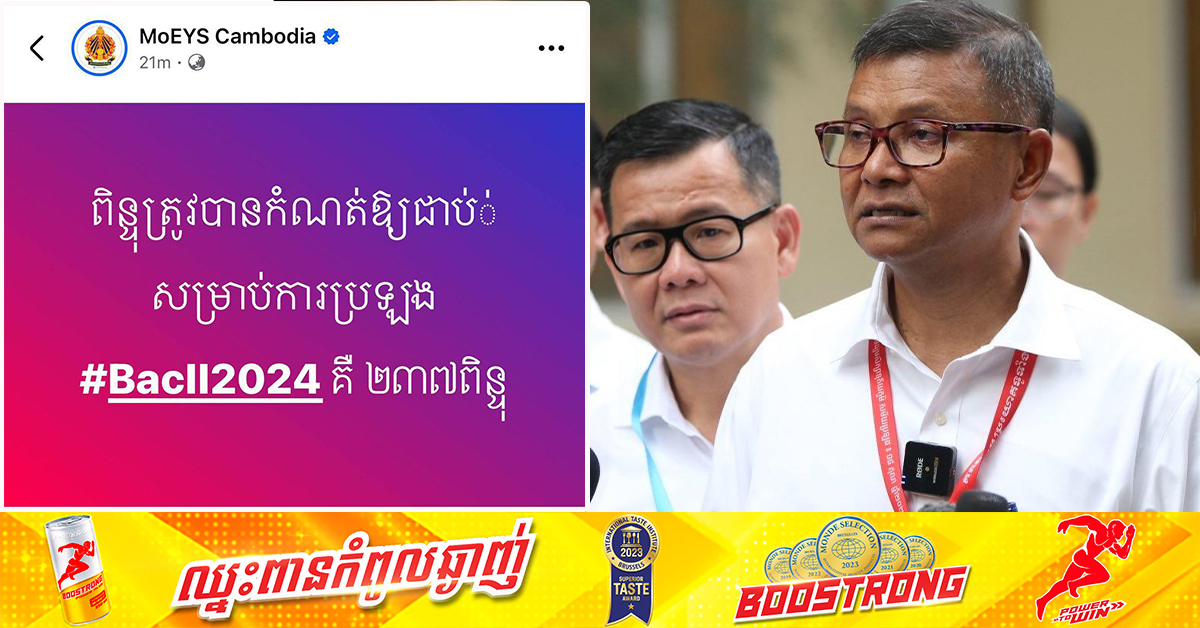 (ភ្នំពេញ)៖ ដូចការគ្រោងទុក ការប្រឡងយកសញ្ញាបត្រមធ្យមសិក្សាទុតិយភូមិ ឬហៅកាត់ថា បាក់ឌុប ចាប់ផ្តើមហើយនៅថ្ងៃអង្គារ ទី០៨ ខែតុលា ឆ្នាំ២០២៤នេះ ជាមួយបេក្ខជនចូលរួមប្រឡងសរុបជាង១៣ម៉ឺននាក់។ បណ្ឌិតសភាចារ្យ ហង់ ជួនណារ៉ុន ឧបនាយករដ្ឋមន្ត្រី រដ្ឋមន្ត្រីក្រសួងអប់រំ យុវជន និងកីឡា បានអញ្ជើញបើកវិញ្ញាសារប្រឡង នៅមណ្ឌលប្រឡងក្នុងវិទ្យាល័យ ព្រះស៊ីសុវត្ថិ ក្នុងរាជធានីភ្នំពេញ ដូចបណ្តាឆ្នាំកន្លងទៅ។ ការប្រឡងនៅថ្ងៃទី០៨ ខែសីហានេះ សម្រាប់ថ្នាក់វិទ្យាសាស្ត្ររួមមាន មុខវិជ្ជា៖ ប្រវត្តិវិទ្យា, ជីវវិទ្យា, គីមីវិទ្យា និងភាសាបរទេស។ ថ្នាក់វិទ្យាសាស្ត្រសង្គម រួមមានមុខវិជ្ជា៖ ផែនដី និងបរិស្ថានវិទ្យា, ប្រវត្តិវិទ្យា,