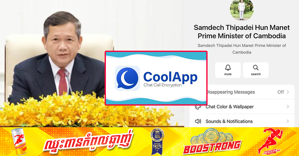 (ភ្នំពេញ)៖ សម្តេចមហាបវរធិបតី ហ៊ុន ម៉ាណែត នាយករដ្ឋមន្ត្រីនៃកម្ពុជា បានបង្កើតគ្រុប CoolApp ដែលមានឈ្មោះថា «Samdech Thipadei Hun Manet Prime Minister of Cambodia» ដើម្បីផ្សព្វផ្សាយអំពីសកម្មភាពការងារប្រចាំថ្ងៃ របស់រាជរដ្ឋាភិបាលកម្ពុជា។ ចំនួនអ្នកចូលរួមក្នុងគ្រុប CoolApp របស់សម្តេចនាយករដ្ឋមន្ត្រី កំពុងបន្តកើនឡើងជាលំដាប់ ដើម្បីងាយស្រួលទទួលបានព័ត៌មានថ្មីៗ របស់រាជរដ្ឋាភិបាល ពិសេសរបស់សកម្មភាពសម្តេចបវរធិបតី ហ៊ុន ម៉ាណែត។ សូមបងប្អូនប្រជាពលរដ្ឋចូលរួម Join ក្នុង Group ផ្លូវការរបស់សម្តេចបវរធិបតី នៅលើបណ្តាញទំនាក់ទំនងសង្គម CoolApp ដើម្បីទទួលបានព័ត៌មាន។