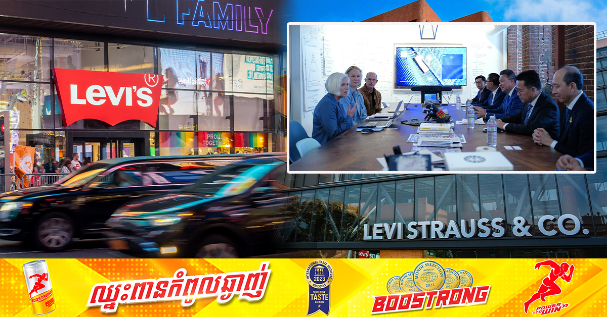 (សាន់ហ្វ្រាន់ស៊ីស្កូ, អាមេរិក)៖ ក្នុងដំណើរស្វះស្វែងរកការវិនិយោគបន្ថែមពីសហរដ្ឋអាមេរិក រសៀលថ្ងៃចន្ទ ទី២៣ ខែកញ្ញា ឆ្នាំ២០២៤ លោកឧបនាយករដ្ឋមន្ត្រី ស៊ុន ចាន់ថុល អនុប្រធានទី១ ក្រុមប្រឹក្សាអភិវឌ្ឍន៍កម្ពុជា បានដឹកនាំគណៈប្រតិភូកម្ពុជា ដោយមានការចូលរួមពីមន្ត្រីក្រសួងស្ថាប័នពាក់ព័ន្ធ និងវិស័យឯកជនផងនោះ ជួបពិភាក្សាការងារជាមួយលោក Jeff Hogue ប្រធានផ្នែកនិរន្តរភាព និងសហការី តំណាងក្រុមហ៊ុន Levi Strauss & Co ដែលជាក្រុមហ៊ុនសម្លៀកបំពាក់លំដាប់ពិភពលោករបស់អាម៉េរិក ហើយត្រូវបានគេស្គាល់ឈ្មោះ ក្រោមម៉ាកសញ្ញា Levi’s។ តាមរយៈជំនួបនោះ តំណាងក្រុមហ៊ុន Levi Strauss & Co