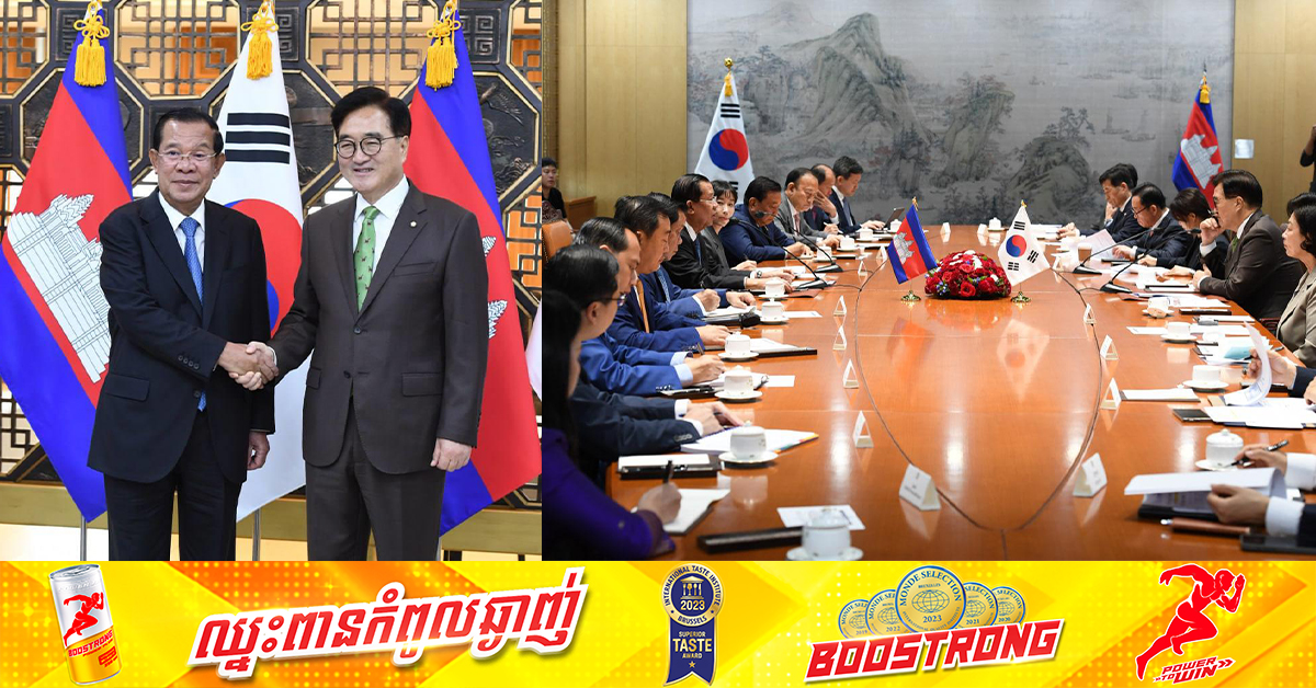 (កូរ៉េខាងត្បូង)៖ សម្តេចតេជោ ហ៊ុន សែន ប្រធានព្រឹទ្ធសភាកម្ពុជា បានស្នើប្រធានរដ្ឋសភានៃសាធារណរដ្ឋកូរ៉េ (កូរ៉េខាងត្បូង) ជំរុញអ្នកវិនិយោគិនមកកម្ពុជា ឲ្យកាន់តែច្រើនបន្ថែមទៀត ខណៈទំហំពាណិជ្ជកម្មរវាងប្រទេសទាំងពីរ កំពុងមានការកើនឡើងគួរឲ្យកត់សម្គាល់។ សំណើនេះបានធ្វើឡើងក្នុងឱកាសដែលសម្តេចតេជោ ហ៊ុន សែន អញ្ជើញជួបពិភាក្សាការងារជាមួយ លោក អ៊ូ វ៉ន់ស៊ីក (Woo Won-Shik) ប្រធានរដ្ឋសភានៃសាធារណរដ្ឋកូរ៉េ នាព្រឹកថ្ងៃទី១០ ខែកញ្ញា ឆ្នាំ២០២៤នេះ នៅវិមានរដ្ឋសភាសាធារណរដ្ឋកូរ៉េ។ ឆ្លៀតក្នុងឱកាសនេះ លោកប្រធានរដ្ឋសភាកូរ៉េ បានសម្ដែងការពេញចិត្ត និងរីករាយចំពោះការកើនឡើងនូវទំនាក់ទំនងក្នុងវិស័យពាណិជ្ជកម្ម និងវិនិយោគ ដែលទំហំពាណិជ្ជកម្មទ្វេភាគីរវាង សាធារណរដ្ឋកូរ៉េ និងកម្ពុជា មានការកើនឡើងយ៉ាងខ្លាំង។ ការបង្កើតនូវកិច្ចព្រមព្រៀងពាណិជ្ជកម្មសេរីកន្លងមកនេះ