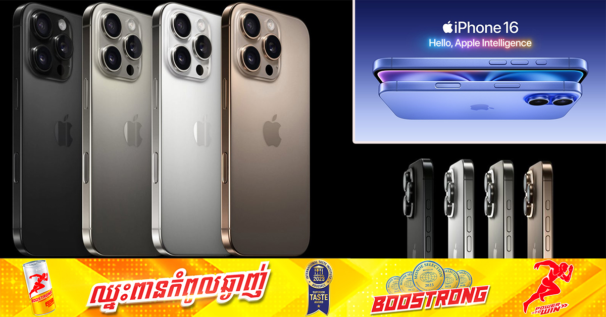 (បរទេស)៖ ក្រុមហ៊ុន Apple បានរៀបចំមហាព្រឹត្តិការណ៍ប្រចាំឆ្នាំរបស់ខ្លួន ដើម្បីប្រកាសបង្ហាញផលិតផលថ្មី ដែលក្នុងនោះ iPhone 16 ត្រូវបានប្រកាសបង្ហាញវត្តមានជាផ្លូវការ អមមកជាមួយនូវលក្ខណៈសម្បត្តិថ្មីៗមួយចំនួន។ នេះបើយោងតាមការចេញផ្សាយរបស់សារព័ត៌មាន GSM Arena ចេញផ្សាយនៅថ្ងៃទី១០ ខែកញ្ញា ឆ្នាំ២០២៤។ នៅក្នុងព្រឹត្តិការណ៍ «It’s Glowtime» ក្រុមហ៊ុន Apple បានប្រកាសបង្ហាញ iPhone ជំនាន់ថ្មីចំនួន ៤ម៉ូដែលគឺ iPhone 16, 16 Plus, 16 Pro និង 16 Pro Max។