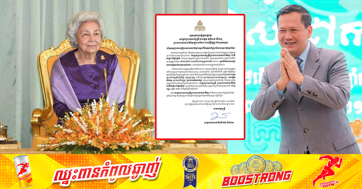 (ភ្នំពេញ)៖ សម្ដេចមហាបវរធិបតី ហ៊ុន ម៉ាណែត នាយករដ្ឋមន្ដ្រីនៃកម្ពុជា បានថ្វាយសារលិខិតថ្លែងអំណរព្រះគុណ ព្រះមហាក្សត្រី នរោត្តម មុនីនាថ សីហនុ ដែលទ្រង់ប្រោសព្រះរាជទានថវិកាចំនួន ៣ម៉ឺនដុល្លារដល់ «មូលនិធិកសាង ហេដ្ឋារចនាសម្ព័ន្ធតាមបណ្ដោយព្រំដែន»។ តាមរយៈសារលិខិតទូលថ្វាយព្រះមហាក្សត្រី ដែលបណ្ដាញព័ត៌មាន Fresh News ទទួលបាននៅថ្ងៃទី៣០ ខែសីហា ឆ្នាំ២០២៤នេះ សម្ដេចធិបតី ហ៊ុន ម៉ាណែត បានបញ្ជាក់យ៉ាងដូច្នេះថា៖ «តាងនាមរាជរដ្ឋាភិបាល និងក្នុងនាមទូលព្រះបង្គំជាខ្ញុំ សូមព្រះបរមរាជានុញ្ញាត សម្តែងនូ ព្រះរាជអំណរគុណថ្វាយចំពោះ សម្តេចព្រះមហាក្សត្រី ព្រះវររាជមាតាជាតិខ្មែរ ជាទីសក្ការៈដ៏ខ្ពង់ខ្ពស់ ដោយព្រះអង្គទ្រង់សព្វព្រះរាជហឫទ័យ ប្រោសព្រះរាជទាន