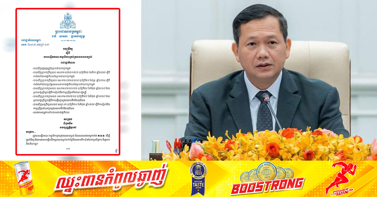 (ភ្នំពេញ)៖ សម្តេចធិបតី ហ៊ុន ម៉ាណែត នាយករដ្ឋមន្ត្រីនៃកម្ពុជា ចេញអនុក្រឹត្យ ស្តីពី ការបង្កើតគណៈកម្មាធិការគ្រប់គ្រងធនធានខ្សាច់។ នេះបើតាមអនុក្រឹត្យដែលបណ្តាញព័ត៌មាន Fresh News ទទួលបាននៅថ្ងៃទី៣១ ខែសីហានេះ៕ ខាងក្រោមនេះជាអនុក្រឹត្យរបស់សម្តេចធិបតី ហ៊ុន ម៉ាណែត៖ ផ្ដល់សិទ្ធិដោយ៖ Fresh News